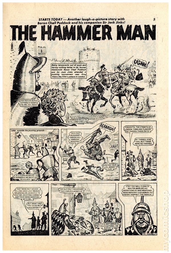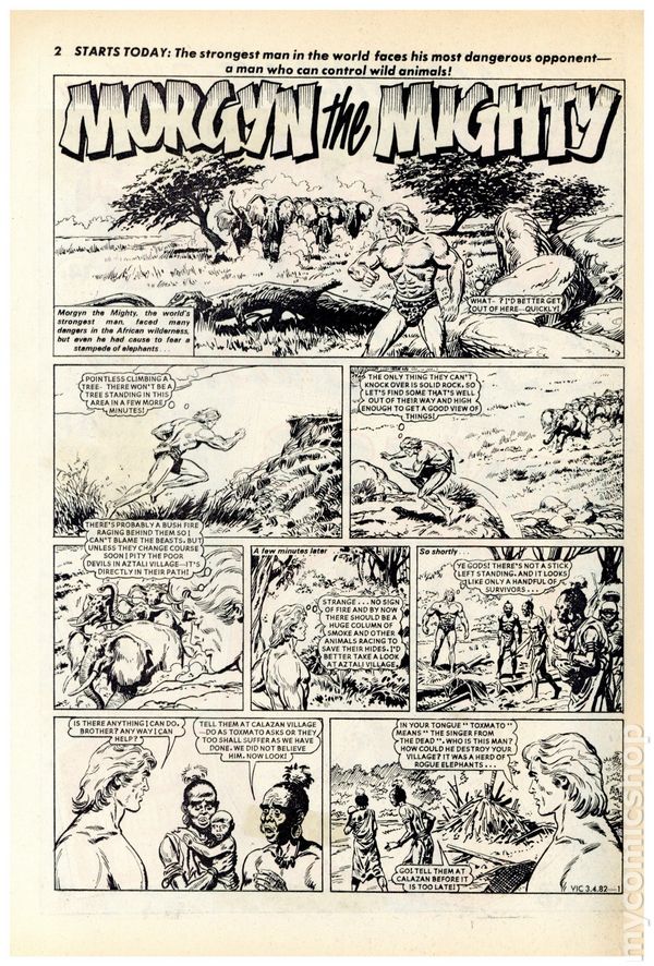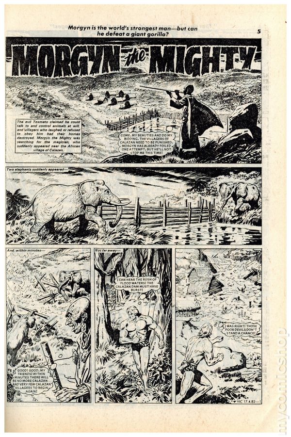 View scansApril 3, 1982. Published by D.C. Thompson and Co. Ltd. in Great Britain. Action/adventure stories feature the Quest of the Last Six Hundred, Johnny Gurkha, the Punch Pirate, Morgyn the Mighty, Legion of the Lost, Duke Farlow, Taneebo the Thunderbolt, and more. 8.5 x 11.75; black and white; 32 pages; 12p cover price.