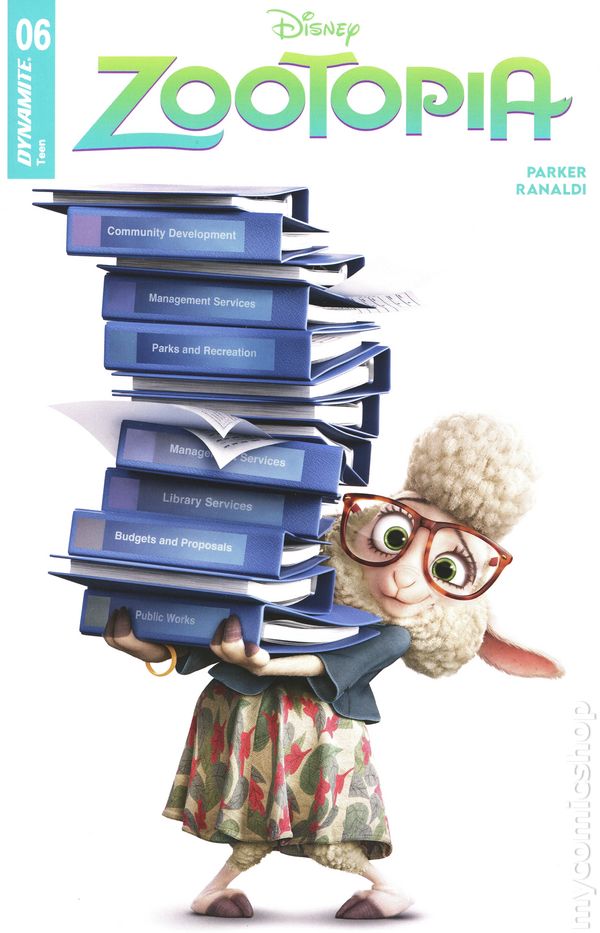Limited 1 for 20 Retailer Incentive Variant Cover. (W) Jeff Parker (A) Alessandro Ranaldi (CA) Trish Forstner RETURN TO THE SCENE OF THE CRIME! Back on the trail of the original PB&J phone launch saboteurs, Officers Hopps and Wilde get a lead to a clandestine party that they need to infiltrate. But as two of Zootopia's highest-profile police animals, they can't exactly go incognito themselves. The solution? The undercover debut of Officer Clawhauser! But will the inexperienced feline be able to maintain his cover long enough to gather any useful intel? 32 pages, full color, rated all ages. Cover price $4.99.