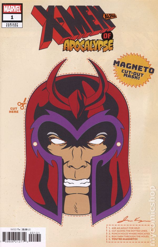 Written by Jeph Loeb. Art by Simone Di Meo. Cover by Taurin Clarke. THE X-MEN OF APOCALYPSE CRASH INTO THE MAIN MARVEL UNIVERSE! A dystopian future created when Charles Xavier was killed, AGE OF APOCALYPSE is home to a war-torn group of X-Men led by Magneto. In order to free their Earth from Apocalypse's cruel reign, they were willing to sacrifice their very existence-or so they thought! The main timeline was restored, Apocalypse was defeated, but their world lived on! Taking place in the direct aftermath of the original crossover's explosive finale, X-MEN OF APOCALYPSE reignites the mission of this iconic reality's X-Men as they journey here to ensure their universe's survival. This desperate mission will take them into the main Marvel Universe, where they will come into conflict with their classic counterparts, forever impacting both team's destinies! 40 pages, full color. Rated T+ Cover price $5.99.