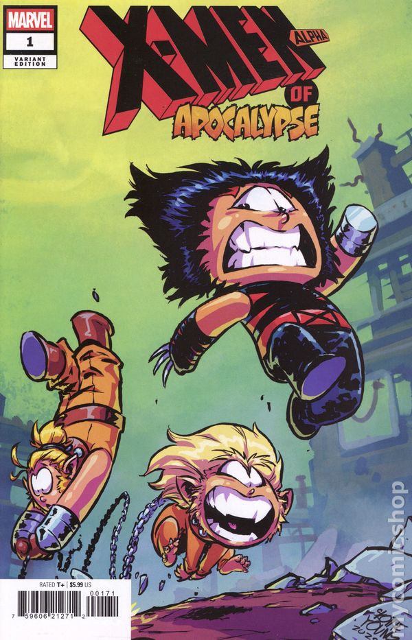 Written by Jeph Loeb. Art by Simone Di Meo. Cover by Skottie Young. THE X-MEN OF APOCALYPSE CRASH INTO THE MAIN MARVEL UNIVERSE! A dystopian future created when Charles Xavier was killed, AGE OF APOCALYPSE is home to a war-torn group of X-Men led by Magneto. In order to free their Earth from Apocalypse's cruel reign, they were willing to sacrifice their very existence-or so they thought! The main timeline was restored, Apocalypse was defeated, but their world lived on! Taking place in the direct aftermath of the original crossover's explosive finale, X-MEN OF APOCALYPSE reignites the mission of this iconic reality's X-Men as they journey here to ensure their universe's survival. This desperate mission will take them into the main Marvel Universe, where they will come into conflict with their classic counterparts, forever impacting both team's destinies! 40 pages, full color. Rated T+ Cover price $5.99.