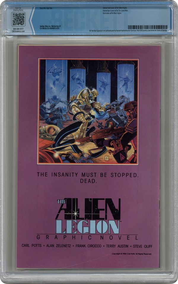 Spider-Man vs. Wolverine (1987 Marvel) 1st Edition 1D graded by CBCS