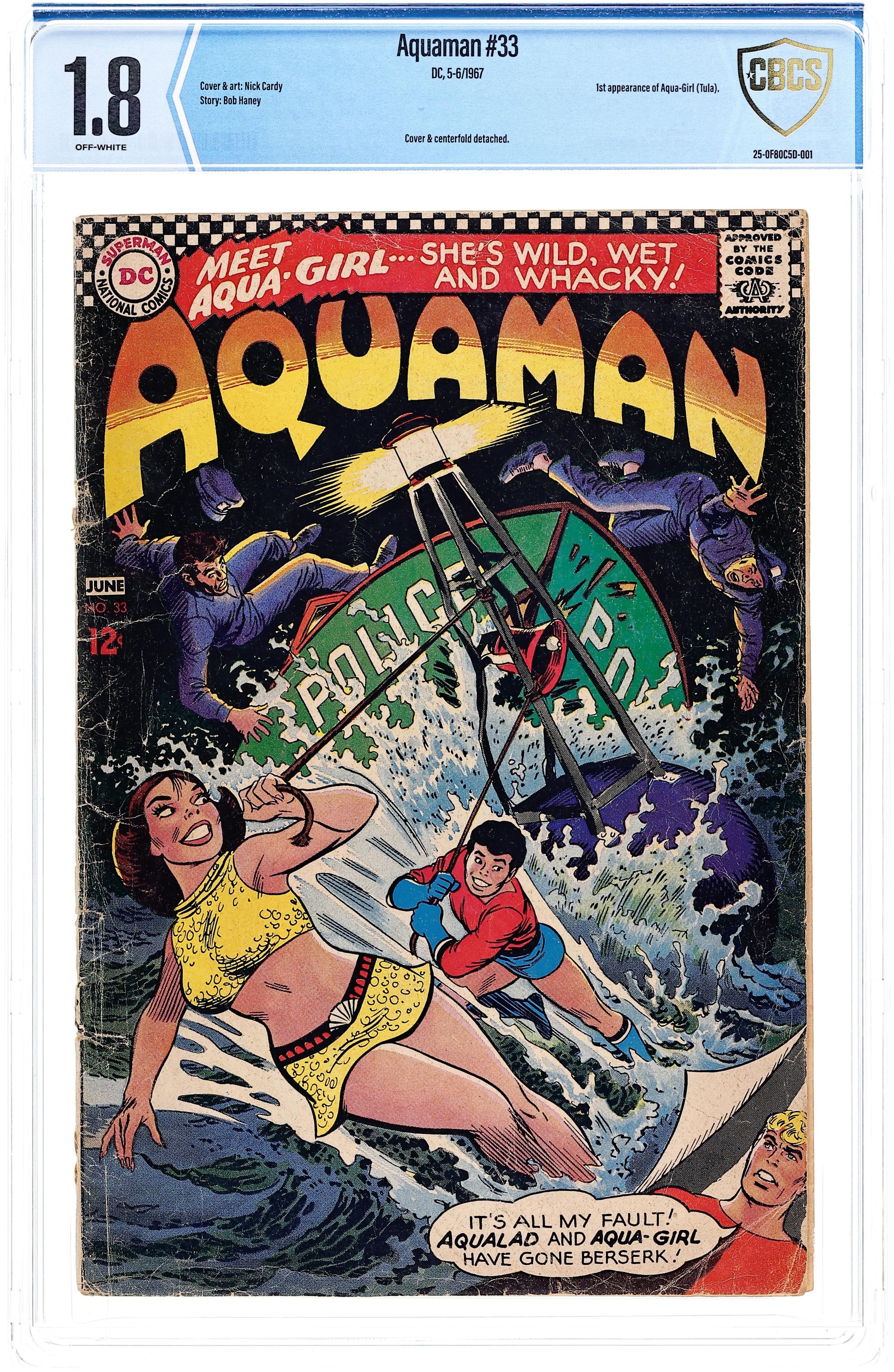 Cover art by Nick Cardy. To Win Is to Lose!, script by Steve Skeates, art by Jim Aparo; Vulkor restores water-breathing ability to the people of Atlantis; Aqualad discovers that an ailing Aqualad has disappeared; Aquaman runs across a city populated by giants; Aqualad must engage in an arena battle with the Eldfur champion. 36 pgs. $0.12. Cover price $0.12.