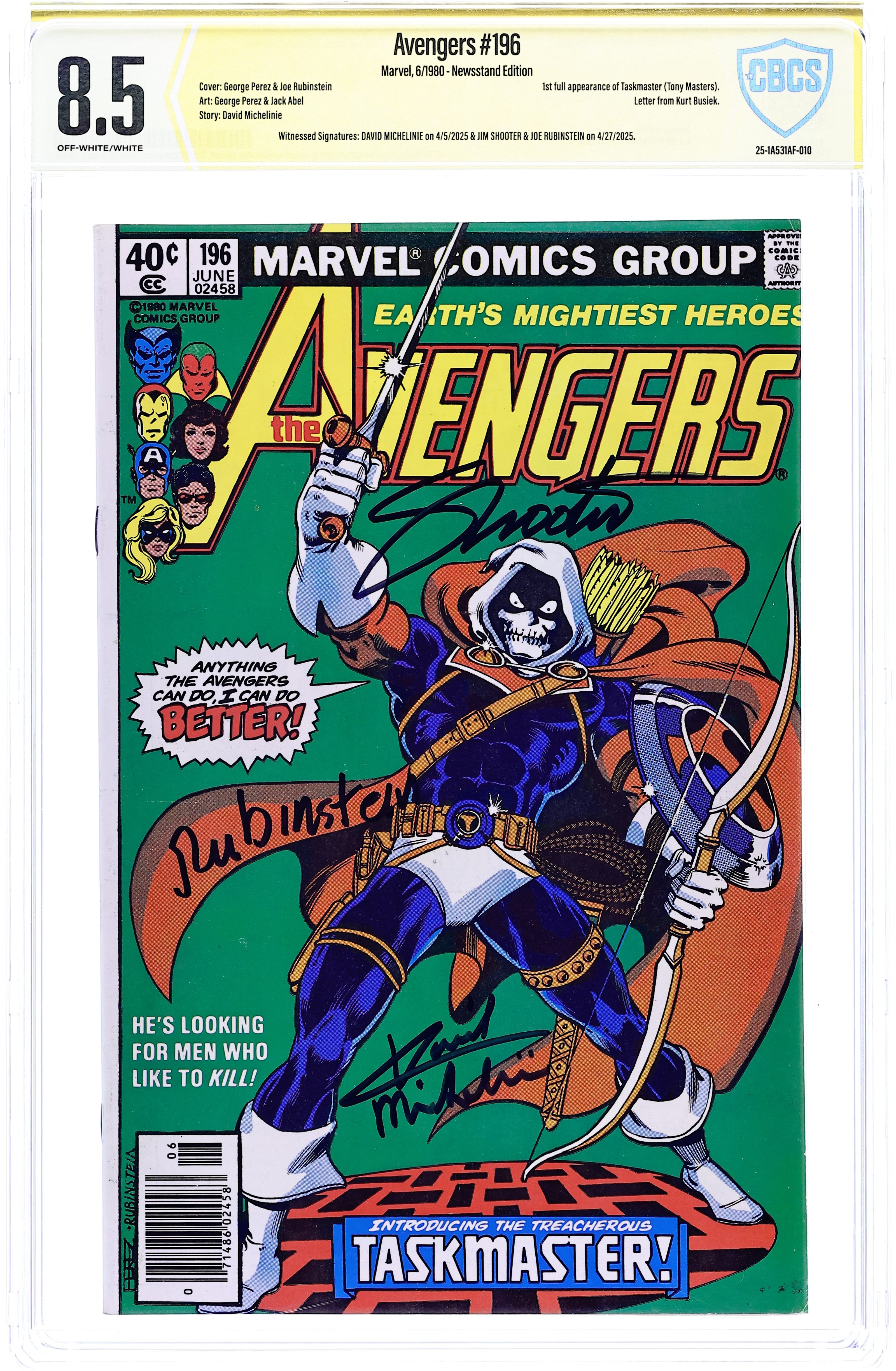- Newsstand Edition. Witnessed Signatures: David Michelinie on 4/5/2025 & Jim Shooter & Joe Rubinstein on 4/27/2025.
