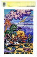 Regular Edition with "Giant Simpsons pull-out poster." Creepy Crawly Tales flip-book. Cover art by Bill Morrison. The Amazing Colossal Homer, script by Steve Vance (plot and script) and Cindy Vance (plot), pencils by Steve Vance (layouts) and Bill Morrison (finishes), inks by Bill Morrison and Tim Bavington; Mr. Burns tests his Rejuvenator Ray on Homer Simpson, resulting in Homer growing to colossal proportions. The Collector!, script by Steve Vance, pencils by Steve Vance (layouts) and Sondra Roy, inks by Bill Morrison; The Collector accidently locks himself in his comic vault when the butler goes away for the weekend, and must burn his precious comic collection to avoid freezing to death. 36 pgs. $2.25. Cover price $2.25.