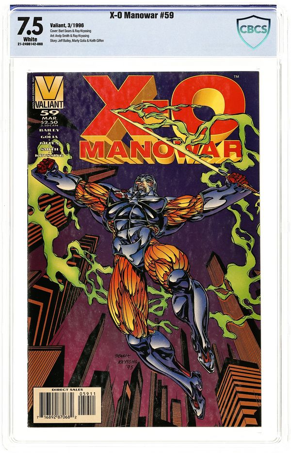 Direct Edition. A clandestine government agency puts Aric and the X-O armor on its Christmas list. It's up to the government's best agent to bring X-O in -- the hard way! "Old Soldiers" is written by Jeff Bailey, Marty Golia and Keith Giffen, with art by Andy Smith and Ray Kryssing. Cover by Bart Sears and Ray Kryssing. Cover price $2.50.