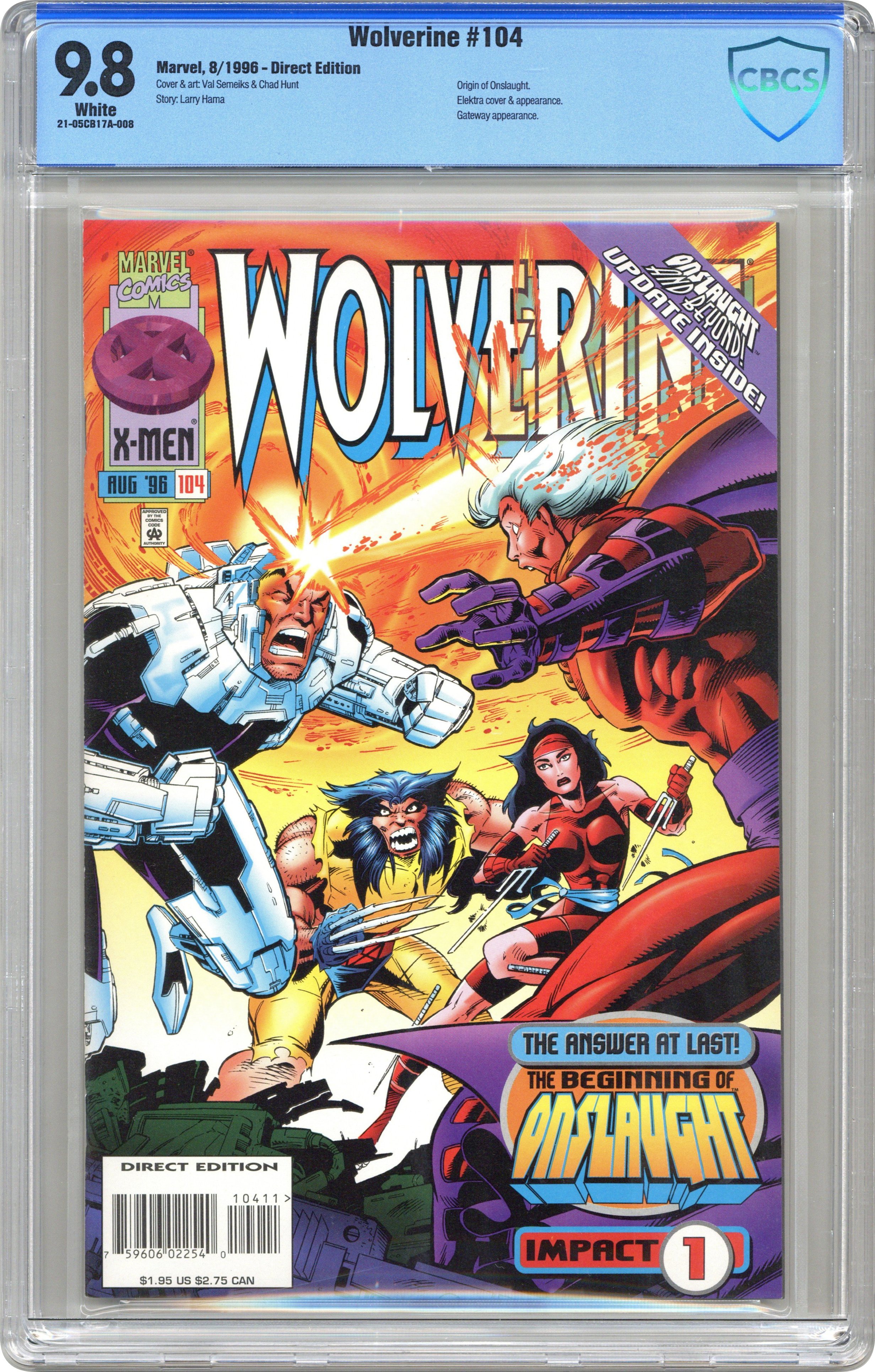 Cover pencils by Val Semeiks, inks by Chad Hunt. The Emperor of the Realm of Grief, script by Larry Hama, pencils by Val Semeiks, inks by Chad Hunt; Elektra and Wolverine go to Gateway to try and get more information on Onslaught; Gateway shows them the moment when Xavier shut off Magneto's brain (after he ripped all of the adamantium out of Wolvie) and the seed was planted for Onslaught to be born; cameos by Daredevil and Magneto. Onslaught Cross-Over. 44 pgs. $1.95. Cover price $1.95.
