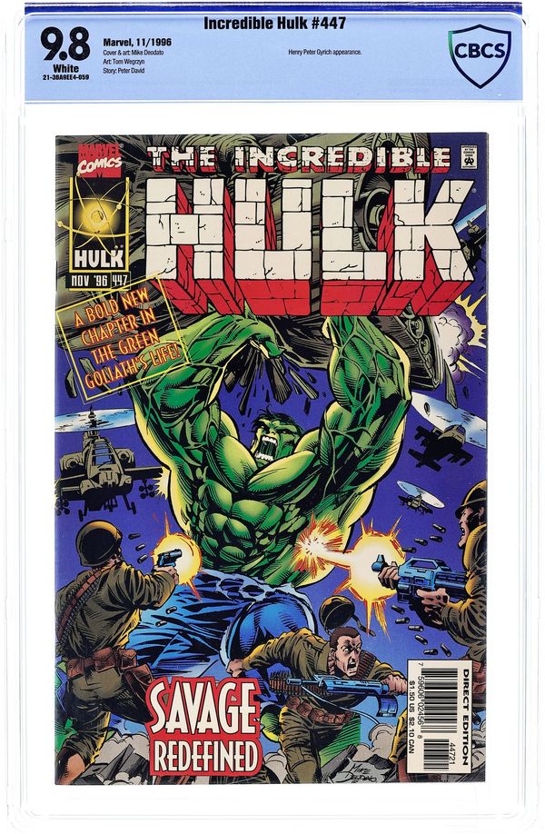 "Breaking the Mold!" Story by Peter David. Art by Mike Deodato, Jr. The Hulk is dying and he's not happy about it. Jump on board for a new direction in the saga of the Incredible Hulk. 36 pages. Cover price $1.50.