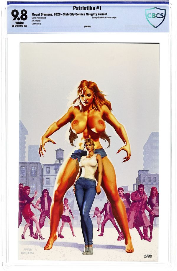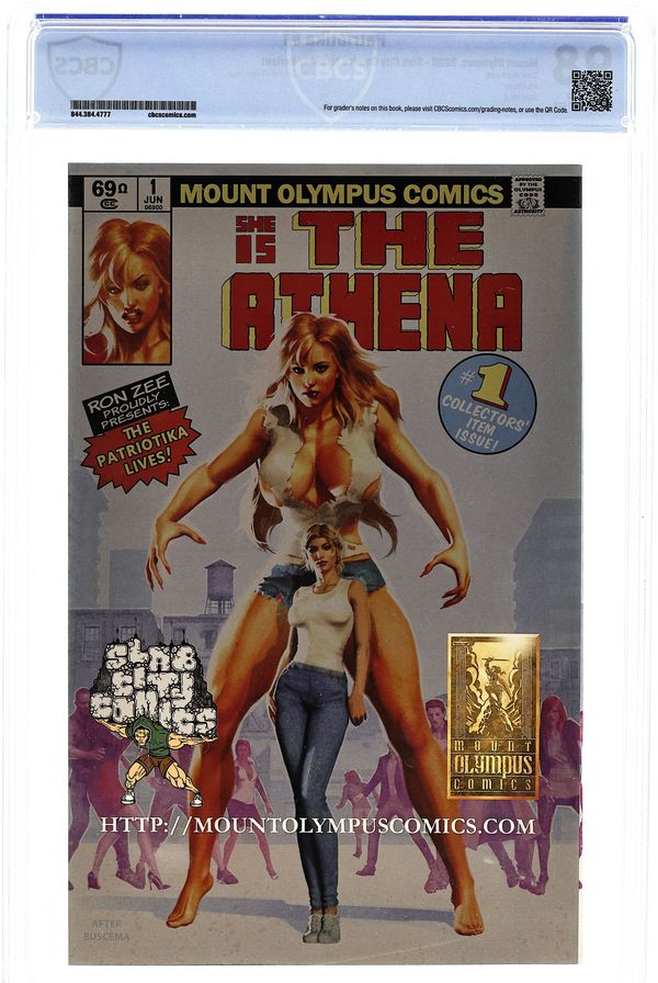 Slab City Comics Exclusive Virgin Cover by Alex Ronald - limited to 50 copies. Erin was an ordinary college student until one day she stumbled upon the mysterious woman named...Athena! When a War Wraith attacks, Athena uses her power to combine Erin and herself unleashing Patriotika! Now Erin must learn how to use her powers and the deal with the enemies of Athena... This comic contains super hero action and adventure. Story by Ron Z, lines by ANTIPUS, colors by Candice Han, lettering by Keith Perkins. 24 pages, full color
