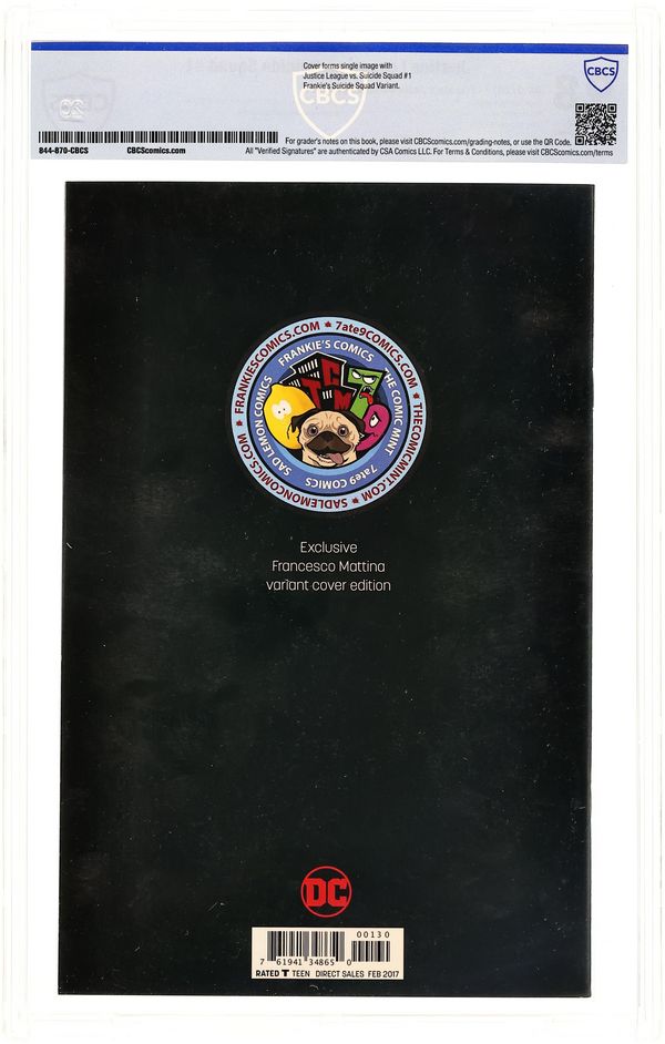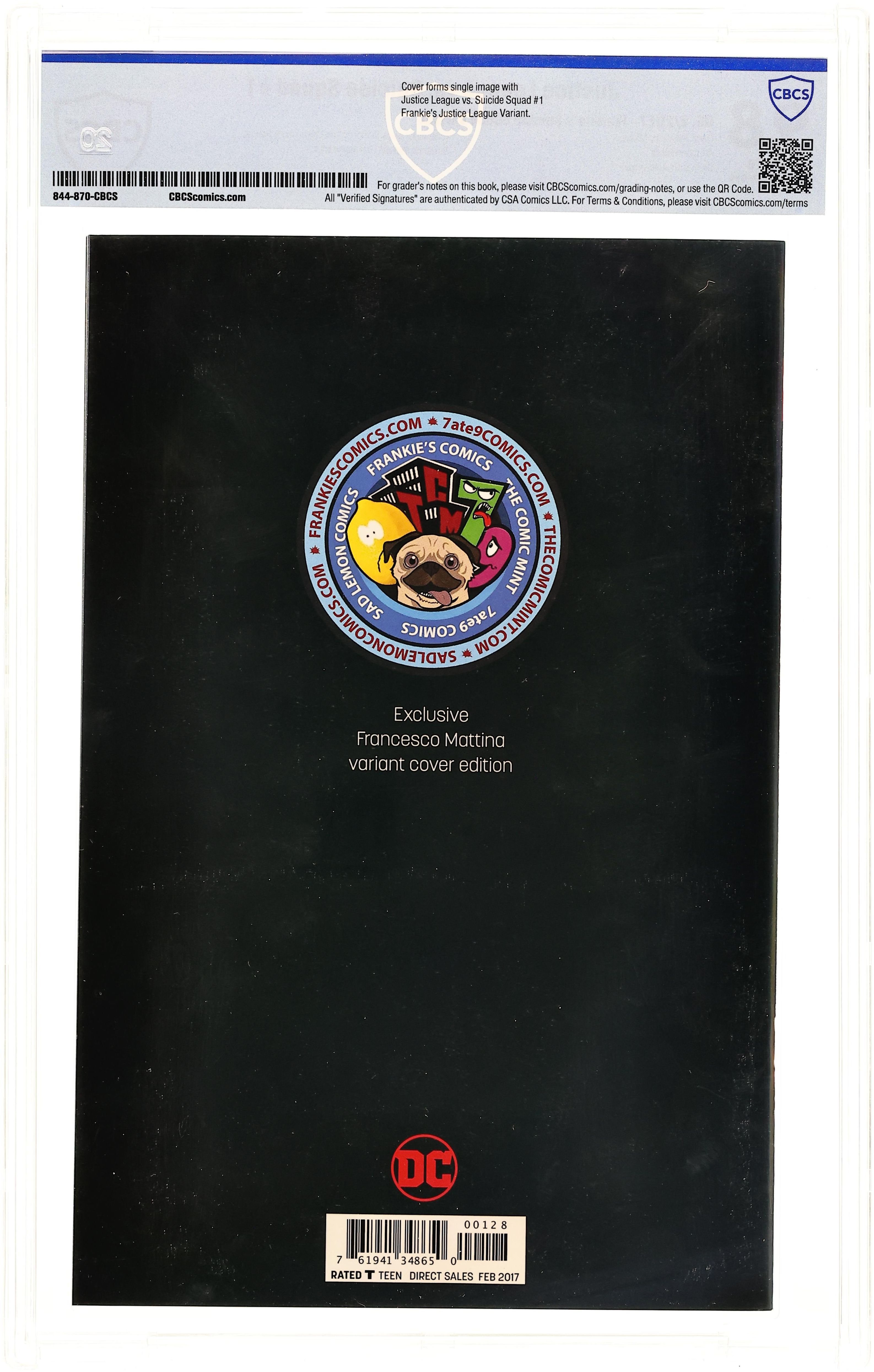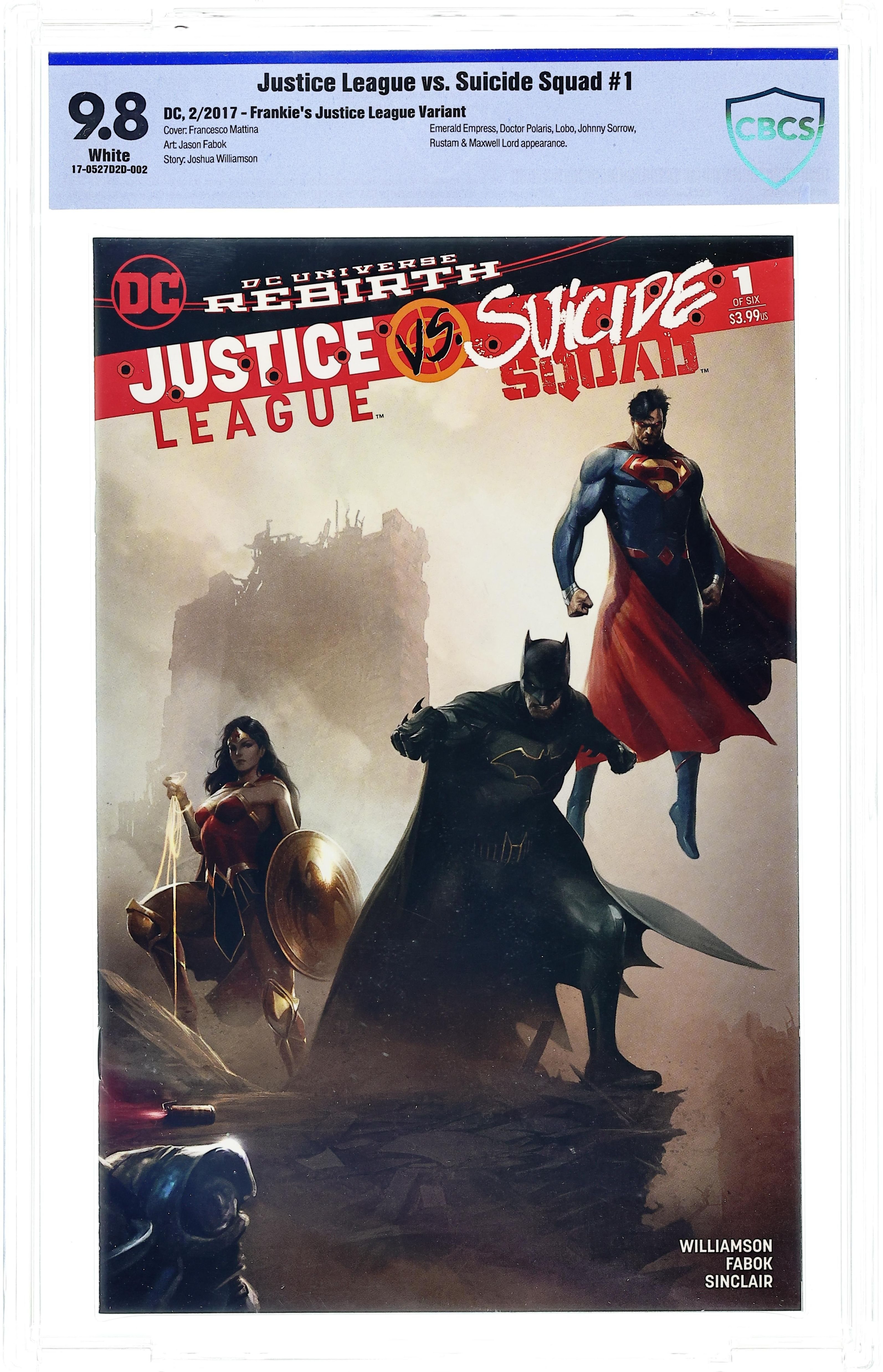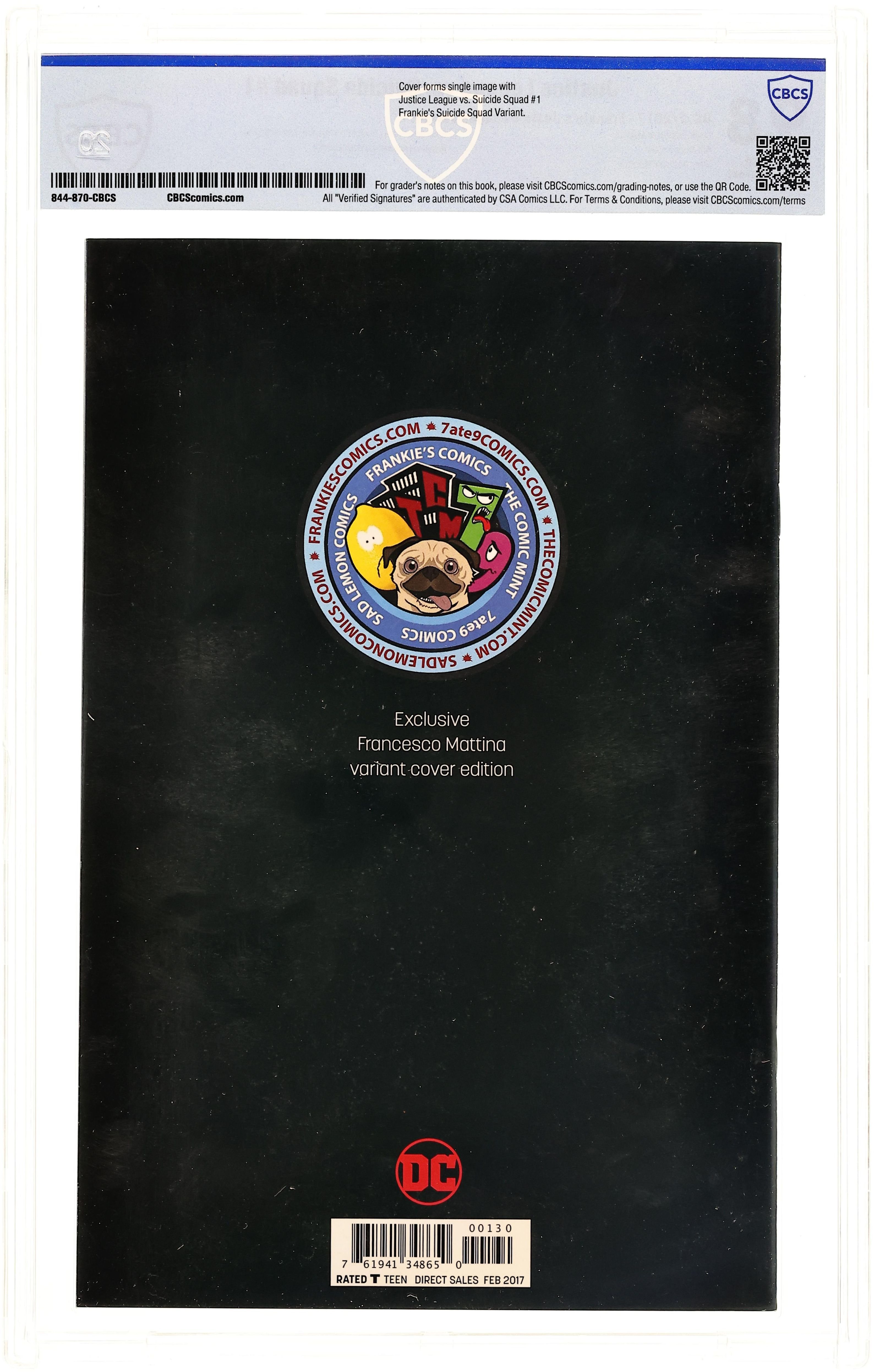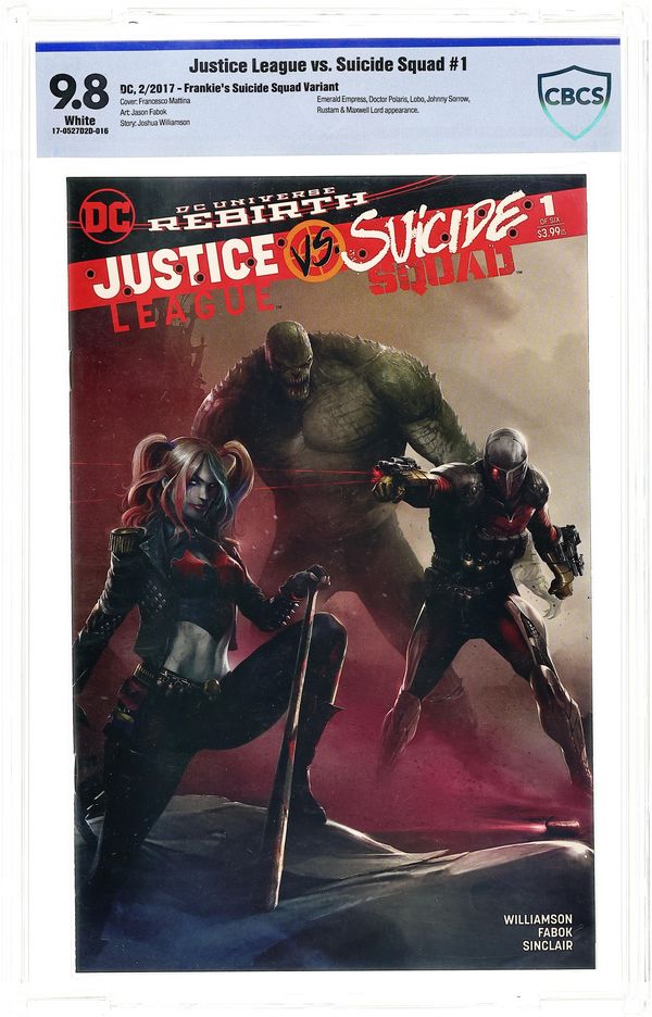 Frankie's Comics, 7 ate 9 Comics, Comic Mint, and Sad lemon Comics exclusive "Suicide Squad" Edition cover by Francesco Mattina. Justice League vs. Suicide Squad: Part 1 of 12 - Written by Joshua Williamson. Art and by Jason Fabok. The first major event storyline of DC's Rebirth era begins with a day Amanda Waller always knew would come: the Justice League discovers the existence of the Suicide Squad! This government-sponsored black-ops team of super-villains with bombs implanted in their brains is obviously a deal-breaker for Earth's paragons of truth and justice! But you can bet that the Wall and her Task Force X won't go down without the fight to end all fights as this weekly series gets underway! 40 pages, full color. Rated T