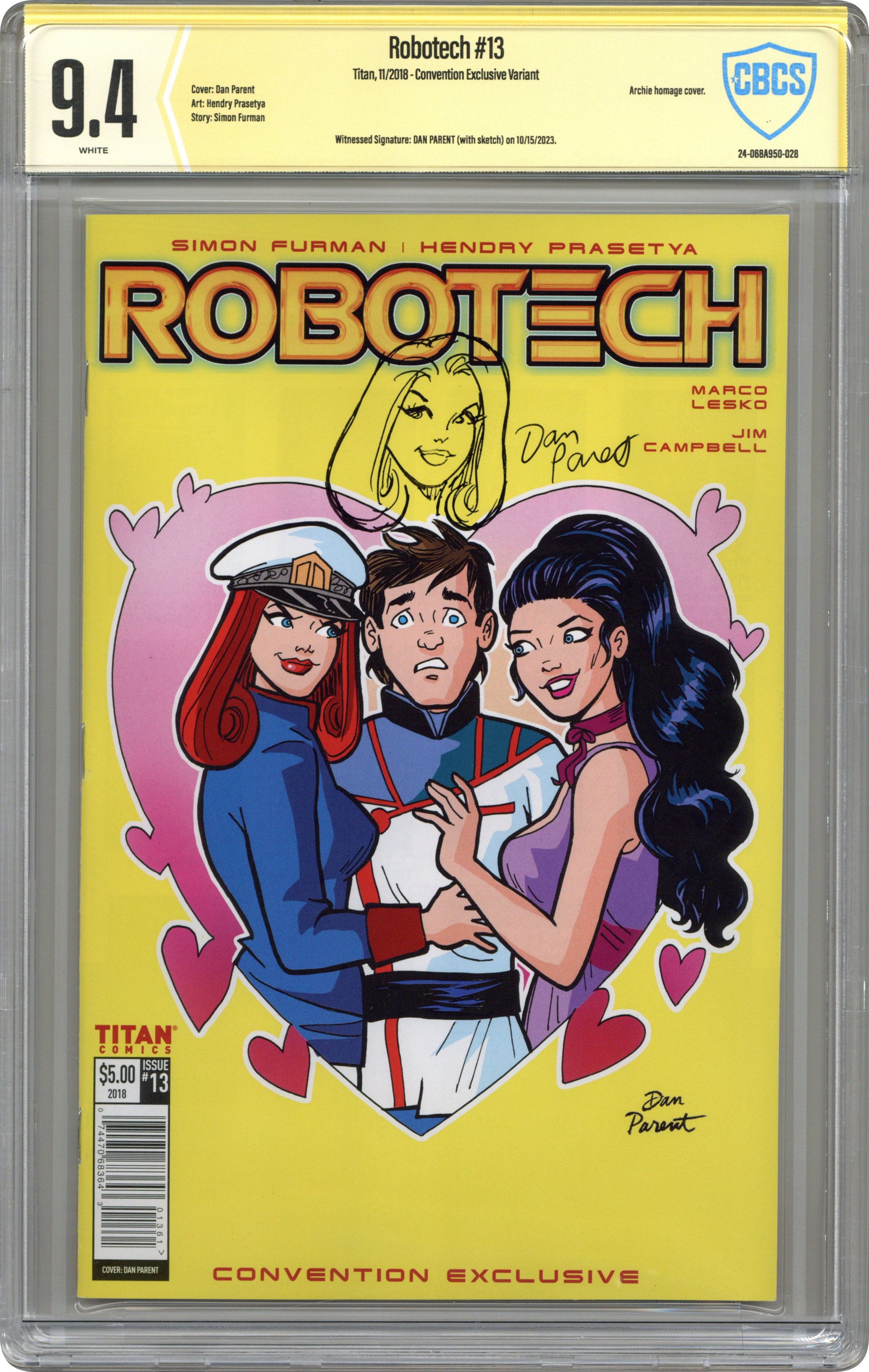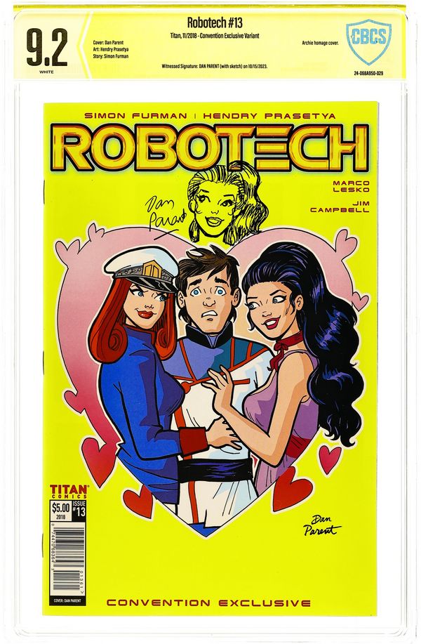 Written by Simon Furman. Art by Hendry Prasetya. Cover by Dan Parent. NYCC EXCLUSIVE VARIANT COVER BY DAN PARENT (ARCHIE COMICS)! The radical Robotech reimagining enters Year Two! The SDF-1 has been warned to stay away from Earth, and Captain Lisa Hayes wants the truth! And while Rick explores his new abilities, Roy Fokker is up to no good... The classic sci-fi anime, reborn in the hands of legendary Transformers writer Simon Furman and Mighty Morphin' Power Rangers artist Hendry Prasetya! Cover price $3.99.
