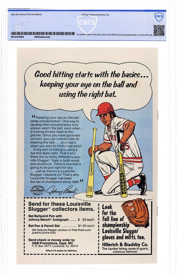 "The Games of Gita." Script by Roy Thomas and Clara Noto, art and cover by Frank Thorne. Captain America stars in a one-page Hostess ad, "The Sore Sir's Apprentices." Cover price $0.30.