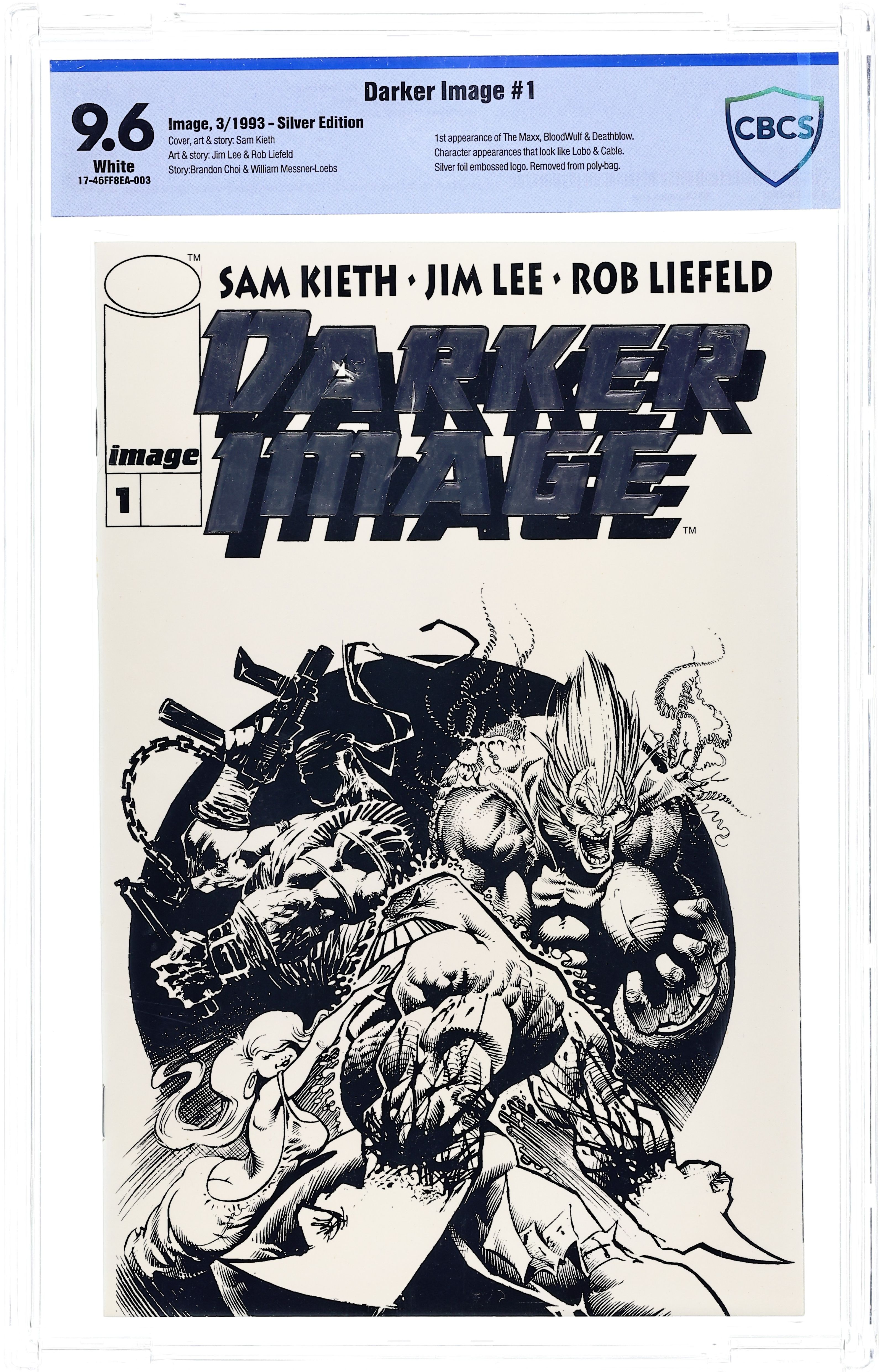 Variant blue cover. Cover pencils by Marc Silvestri, inks by Matt Banning (as Batt). "Coming Of Age," script by Garth Ennis, pencils by Marc Silvestri, inks by Matt Banning (as Batt); In New York City, Jackie Estacado is introduced as he stalks an undisclosed person for his "Uncle" Frankie Franchetti; The pair suspect that this man has been cheating the Franchetti Crime Family and decide on a whim that he would be better off dead; Jackie crushes the man with his sports car and shoots him several until he's dead; The Brotherhood of Darkness and a group of Angelus' warriors attack Jackie. "I Hope You've Enjoyed The Darkness" article by Marc Silvestri, pencils by Silvestri; Silvestri describes the making of the series. 36 pgs., full color. Cover price $2.50.