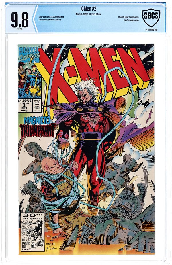 Direct Edition. Cover pencils by Jim Lee, inks by Scott Williams. Firestorm, script by Jim Lee (Co-Plotter) and Chris Claremont, pencils by Jim Lee inks by Scott Williams; The Prof and X-Men Blue are captured and taken to Asteroid M; Magneto discovers that Moira altered his genetic structure when he was a child in her care; The rest of the X-Folk are told they must rescue their team-mates before the Magneto Protocols are implemented. Cover price $1.00.