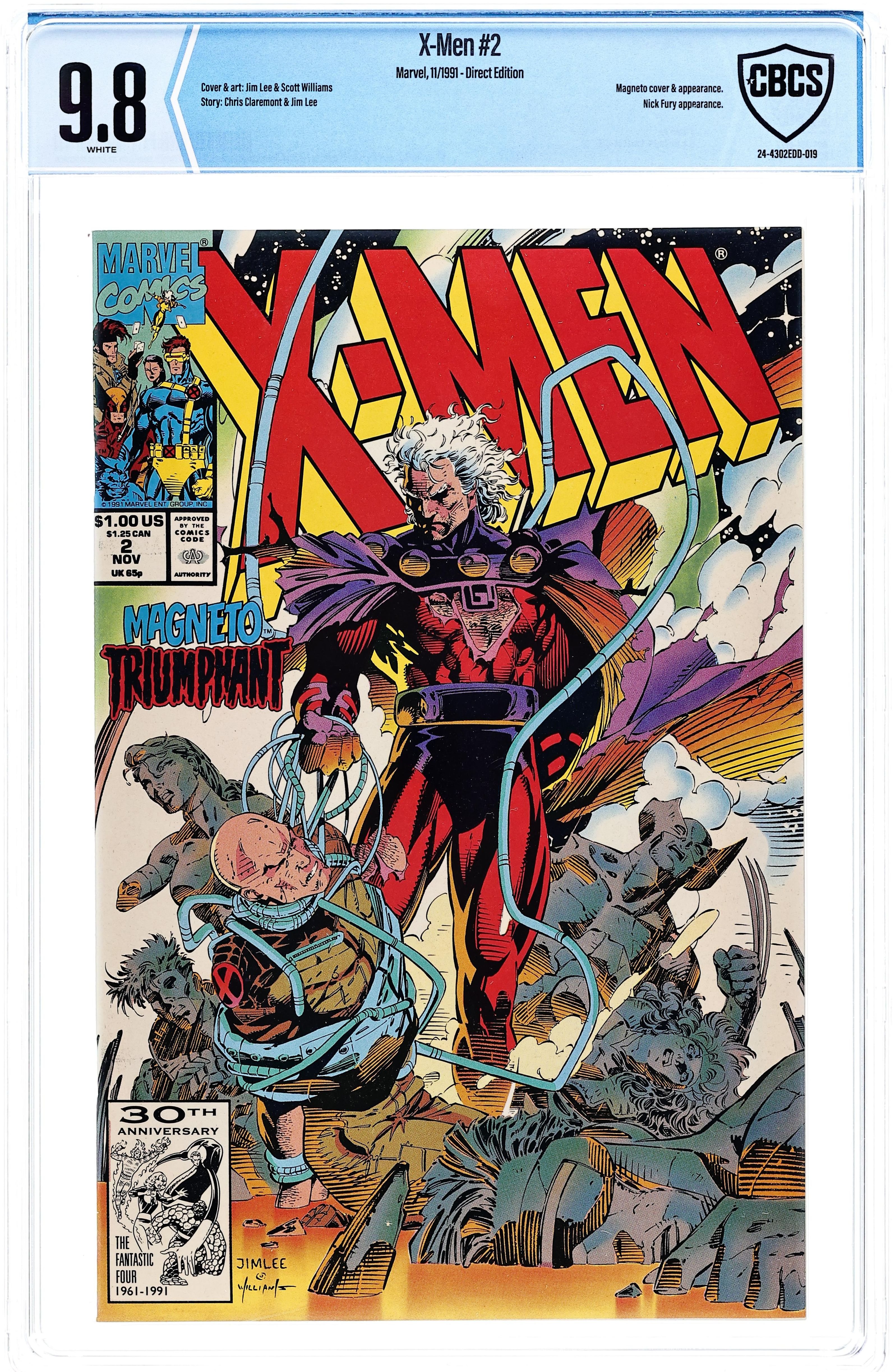 Comics X-Press Signed Edition. Autographed by Jim Lee with Comics X-Press limited photo certificate of Jim Lee. Fold-out cover. Magneto guest stars in "Rubicon." Script by Jim Lee (co-plot) and Chris Claremont, pencils by Jim Lee, inks by Scott Williams. Nick Fury cameo. 2-page pin-up: gallery of X-Men villains. Lee/Williams cover. Cover price $3.95.