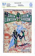 Giant-size issue. Cover by Neal Adams. First appearance of John Stewart in Beware My Power, script by Denny O'Neil, pencils by Neal Adams, inks by Dick Giordano; When Guy Gardner is injured, the Guardians of the Universe instruct Hal Jordan to train another back-up, but John Stewart has different ideas about how to be a Lantern; When an attempt is seemingly made on the life of racist politician Jeremiah Clutcher, John Stewart figures out that the attack was faked and part of a cynical plot to get Clutcher elected president. What Can One Man Do?, script by Elliot Maggin, pencils by Neal Adams, inks by Dick Giordano; After Green Arrow witnesses the death of a young boy in a riot, he decides that he might be able to do more for his city as its mayor. Reprint back-up story: Earth's First Green Lantern!, (from Green Lantern 16), script by Gardner Fox, pencils by Gil Kane, inks by Murphy Anderson; Hal Jordan explains to Pieface why Abin Sur came to Earth in a spaceship when all Green Lanterns can travel thru space unaided. The Flash ad. 52 pgs., full color. $0.25. Cover price $0.25.