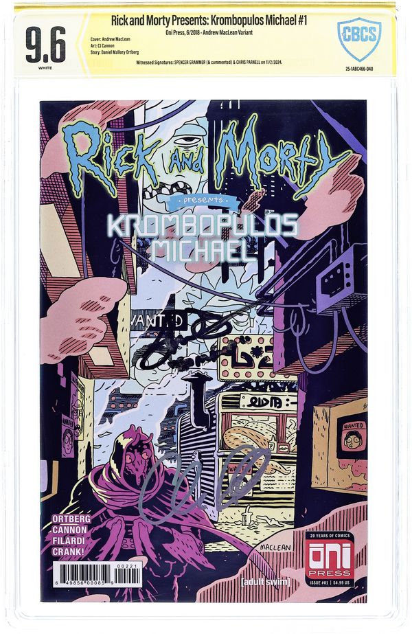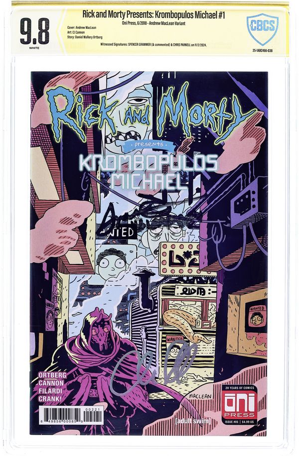 Written by Daniel Mallory Ortberg. Art by CJ Cannon and Nick Filardi. Cover by Andrew MacLean. Learn the secret stories and hidden pasts of your favorite Rick and Morty characters in Oni Press's new quarterly series of one-shots: RICK AND MORTY PRESENTS! In this issue, writer Mallory Ortberg (co-founder of THE TOAST) joins series artists CJ Cannon and Nick Filardi to tell the tale of KROMBOPULOS MICHAEL, the professional assassin who just loves killin'. Discover the roots of Rick's relationship with the galaxy-trotting killer with no code of ethics: children, animals, old people... it doesn't matter! 36 pages, full color. Cover price $4.99.