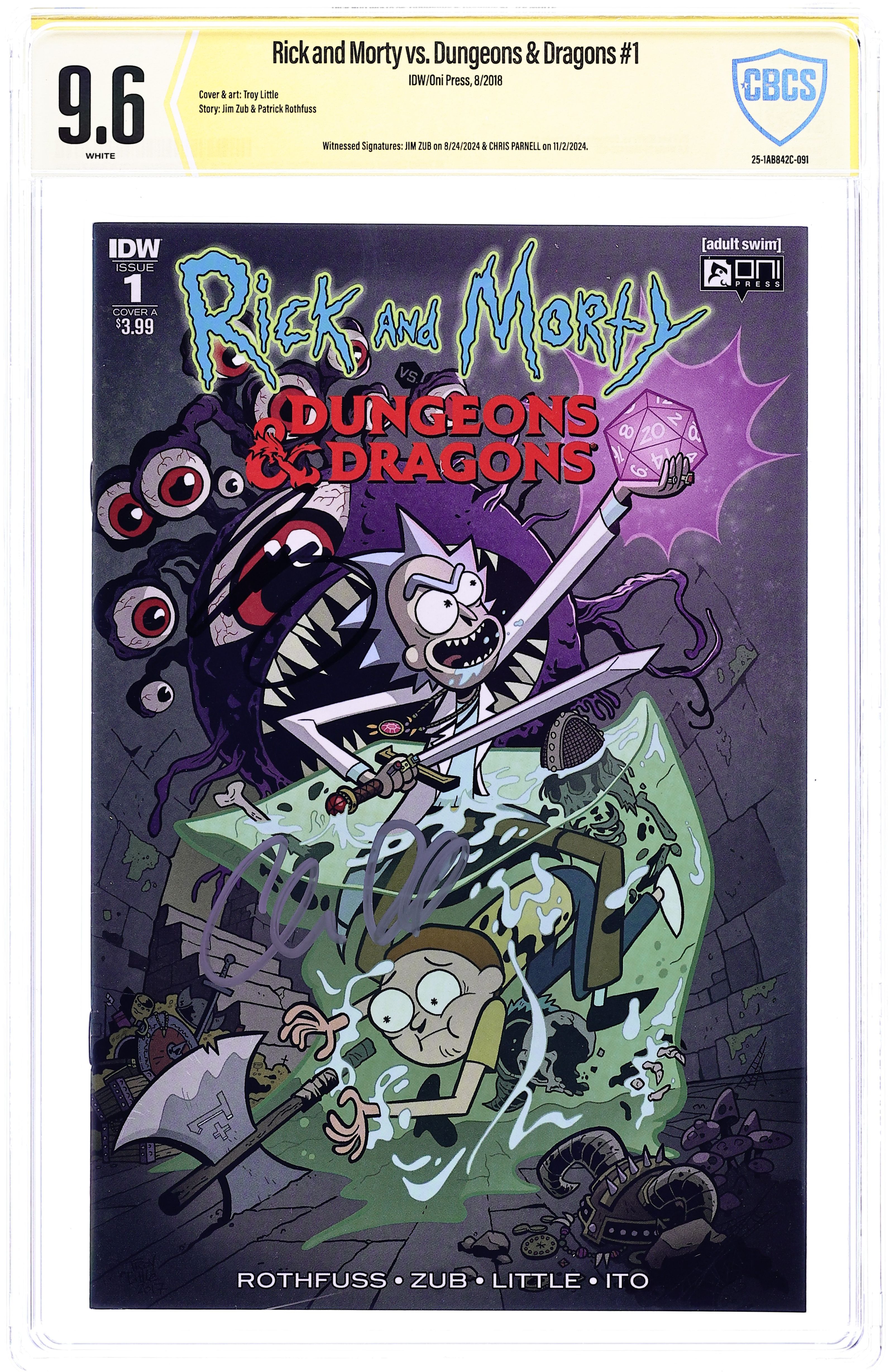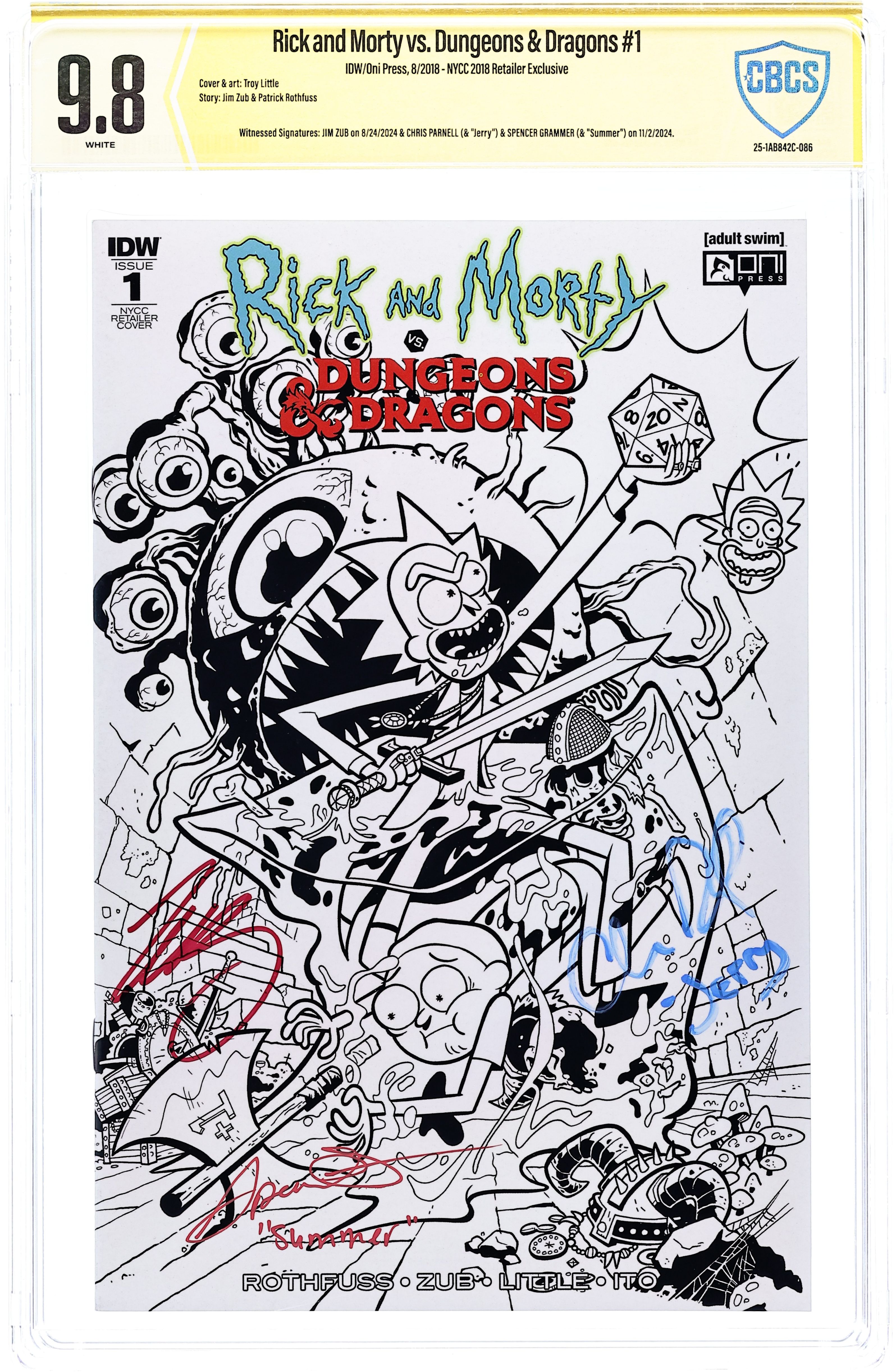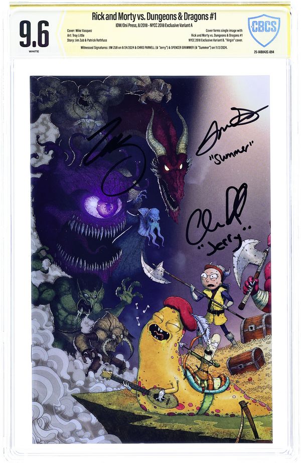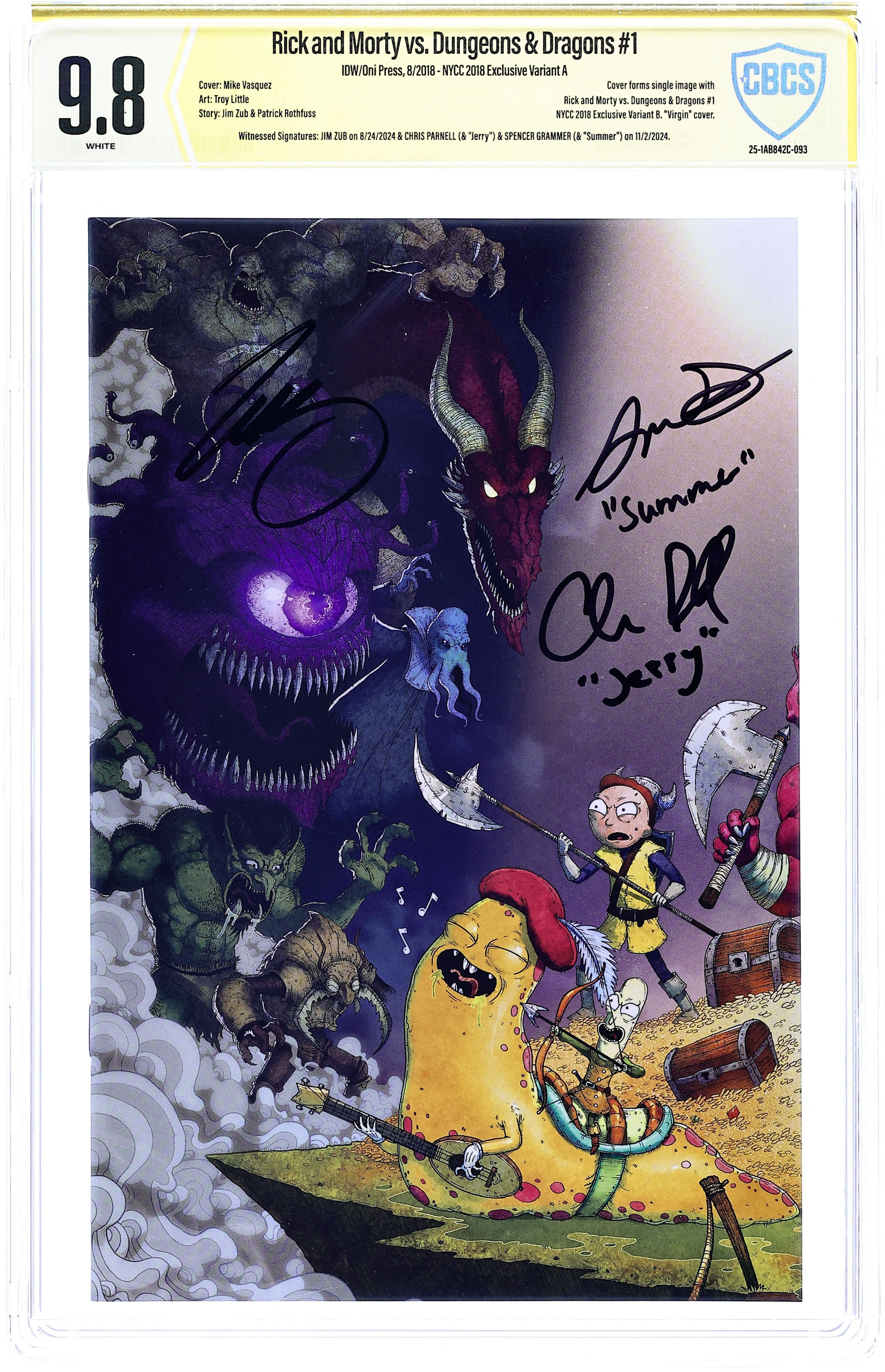 - NYCC 2018 Exclusive Variant A. Witnessed Signatures: Jim Zub on 8/24/2024 & Chris Parnell (& "Jerry") & Spencer Grammer (& "Summer") on 11/2/2024.