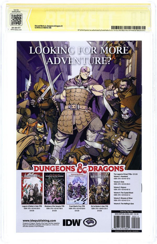 Limited 1 for 10 Retailer Incentive Variant Cover. Written by Patrick Rothfuss and Jim Zub. Art by Troy Little. Cover by Mike Vasquez. Dungeons & Morty & Destruction & Death & Rick & Swords & Sassery & Hashtag & Ampersand & It all ends here, people & oh, yeah-Dragons. Patrick Rothfuss, the multiple award-winning, bestselling author of The Kingkiller Chronicles series, joins Dungeons & Dragons fan-favorite author Jim Zub (Avengers, Wayward) on a tri-dimensional fantasy adventure! Rick and Morty is one of the most popular shows in Adult Swim history, with a steady fan following since it debuted in 2013. This is the first official Rick and Morty team-up story and should have deep traction in fan circles! Dungeons & Dragons 5th Edition sales continue to grow each year and the Baldur's Gate video games have sold millions of copies around the world. D&D has returned as a cultural force in bookstores and online. 32 pages, full color. Mature Readers Cover price $4.99.