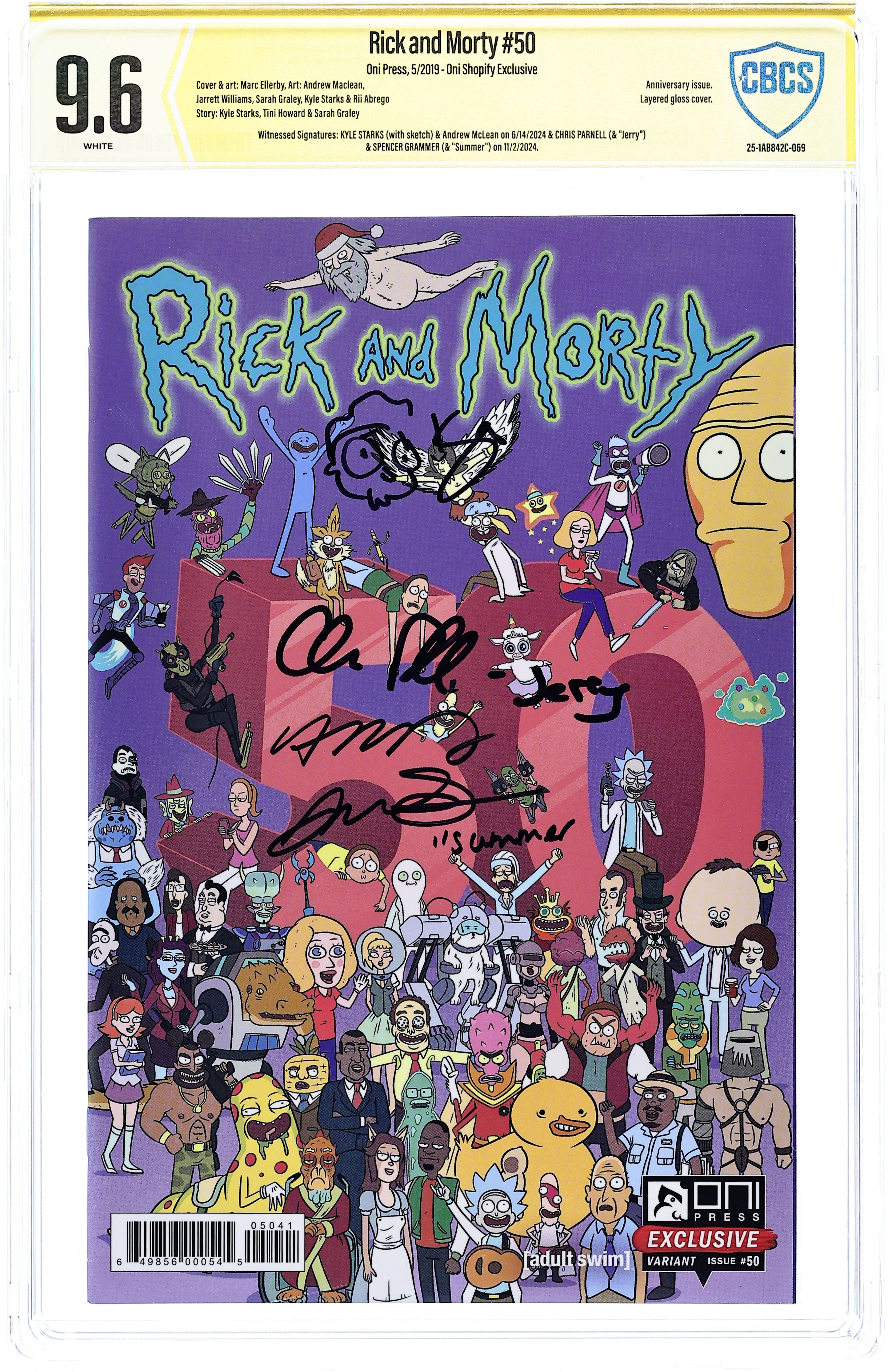 - Oni Shopify Exclusive. Witnessed Signatures: Kyle Starks (with sketch) & Andrew McLean on 6/14/2024 & Chris Parnell (& "Jerry") & Spencer Grammer (& "Summer") on 11/2/2024.