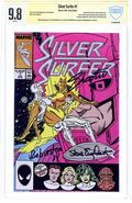 "Evil Lurks Beyond the Black Hole!" Guest-starring Mr. Fantastic and the Invisible Woman. Story by Steve Englehart. Art by Ron Lim and Joe Rubinstein. Galactus is dying, but there is one man who has saved the life of the Devourer of Worlds once before. Norrin Radd races across the galaxy to enlist the help of Reed Richards, the leader of the Fantastic Four and arguably the smartest man in the Marvel Universe. Plus, Ron Lim begins his legendary run on the Silver Surfer. 32 pages. Cover price $1.00.