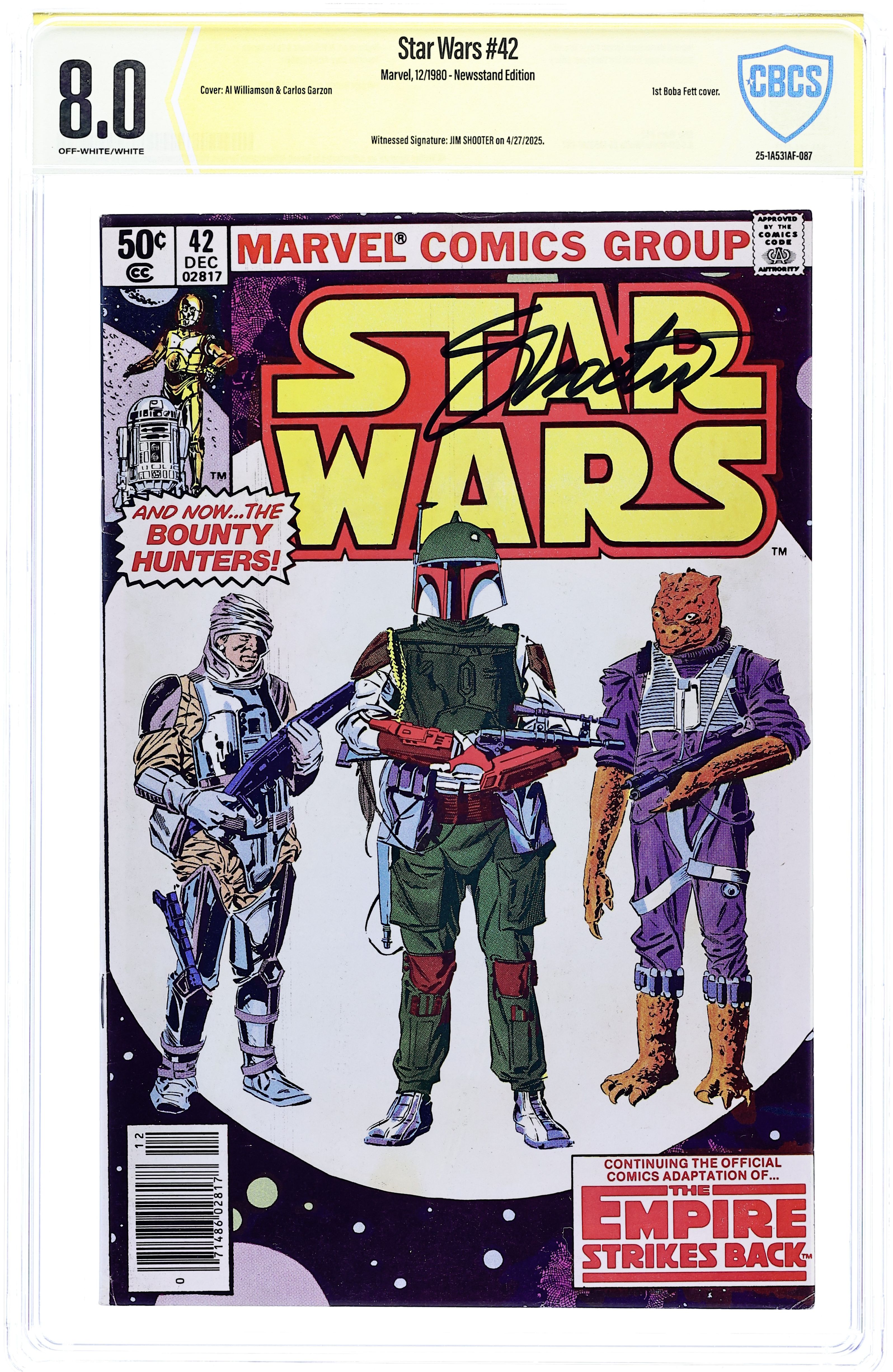 - Direct Edition. Witnessed Signatures: Daniel Logan (& "Boba Fett") on 3/16/2024 & Jim Shooter on 6/15/2024.