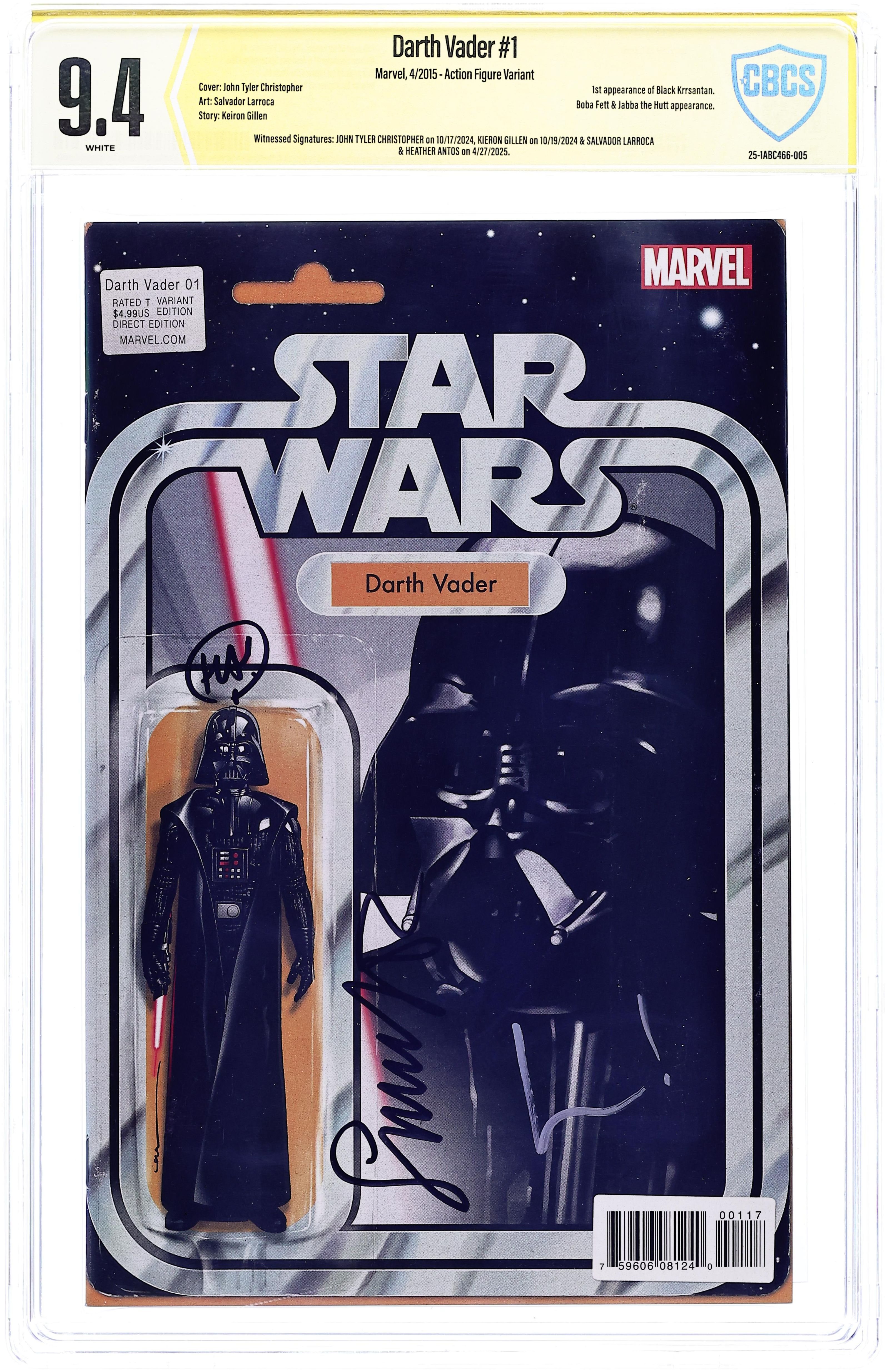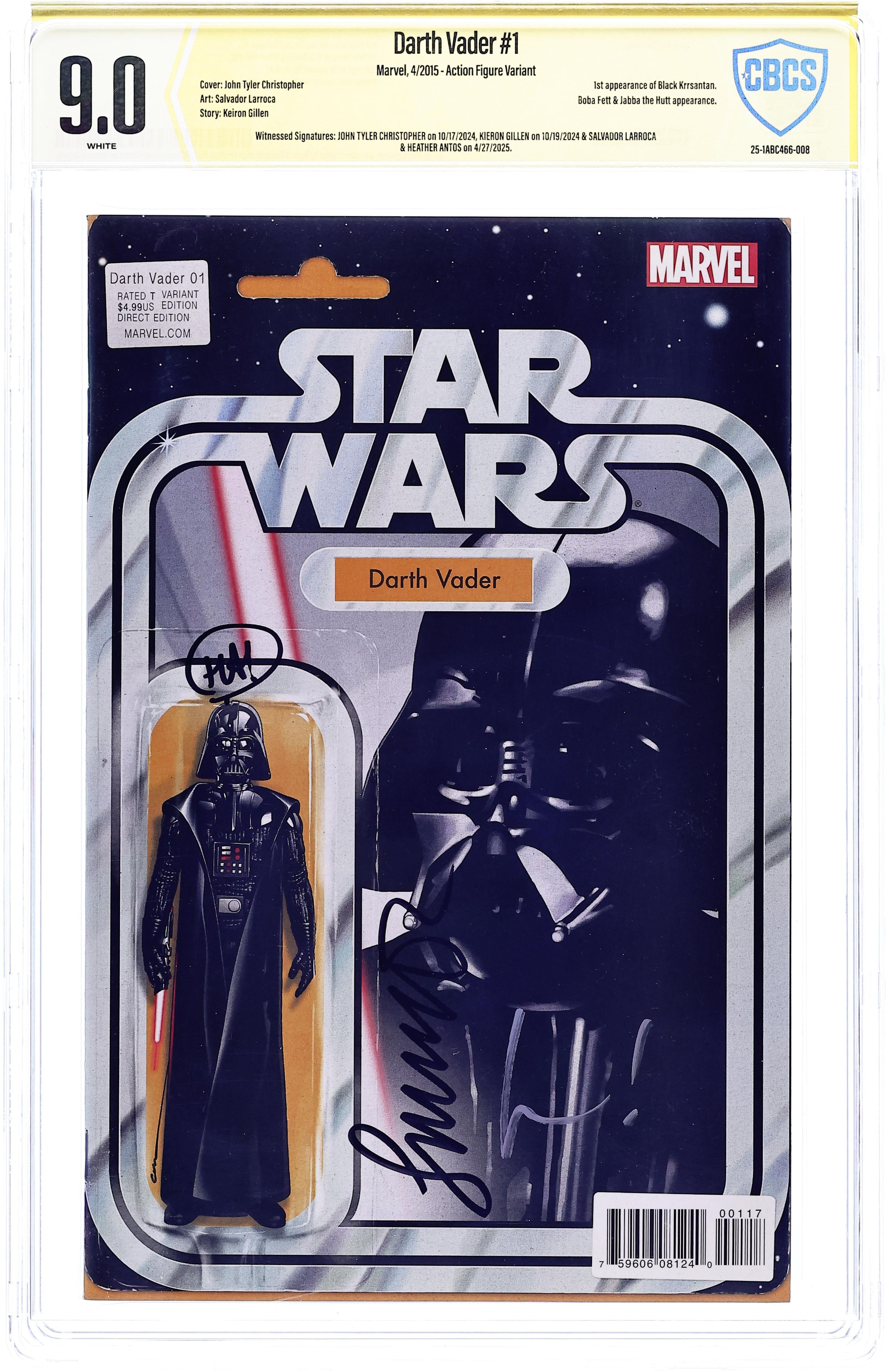 - Witnessed Signatures: John Tyler Christopher on 10/17/2024. Kieron Gillen on 10/19/2024 & Salvador Larroca & Heather Antos on 4/27/2025. Action Figure Variant.