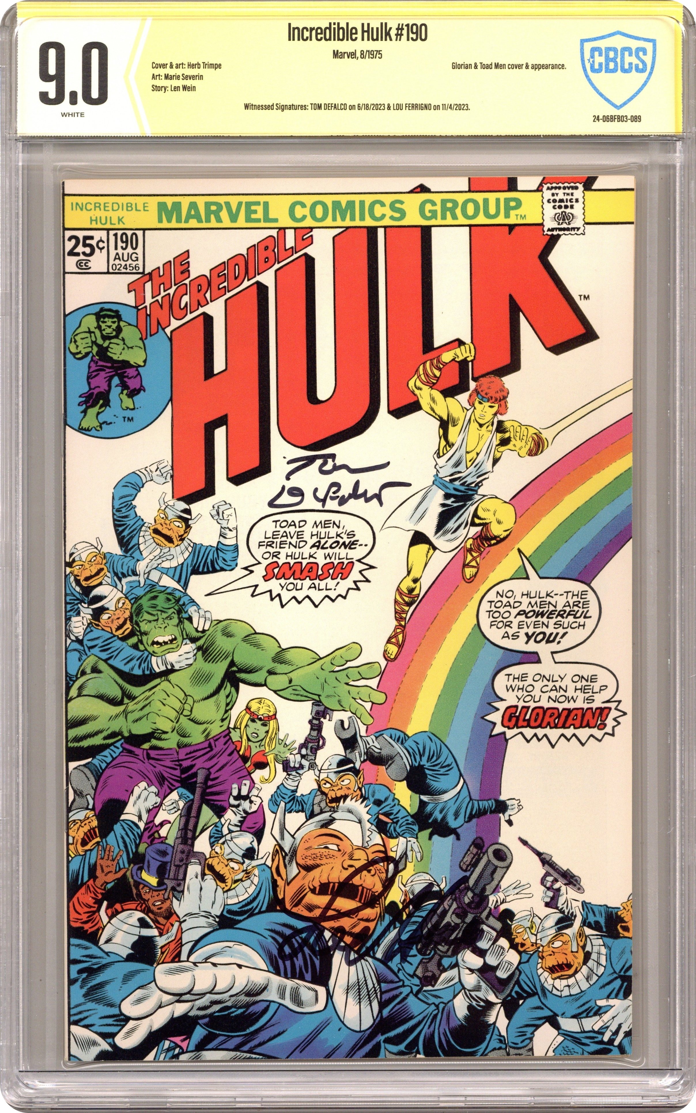 - Witnessed Signatures: Lou Ferrigno on 11/4/2023 & Roy Thomas & Steve Englehart on 6/15/2024.