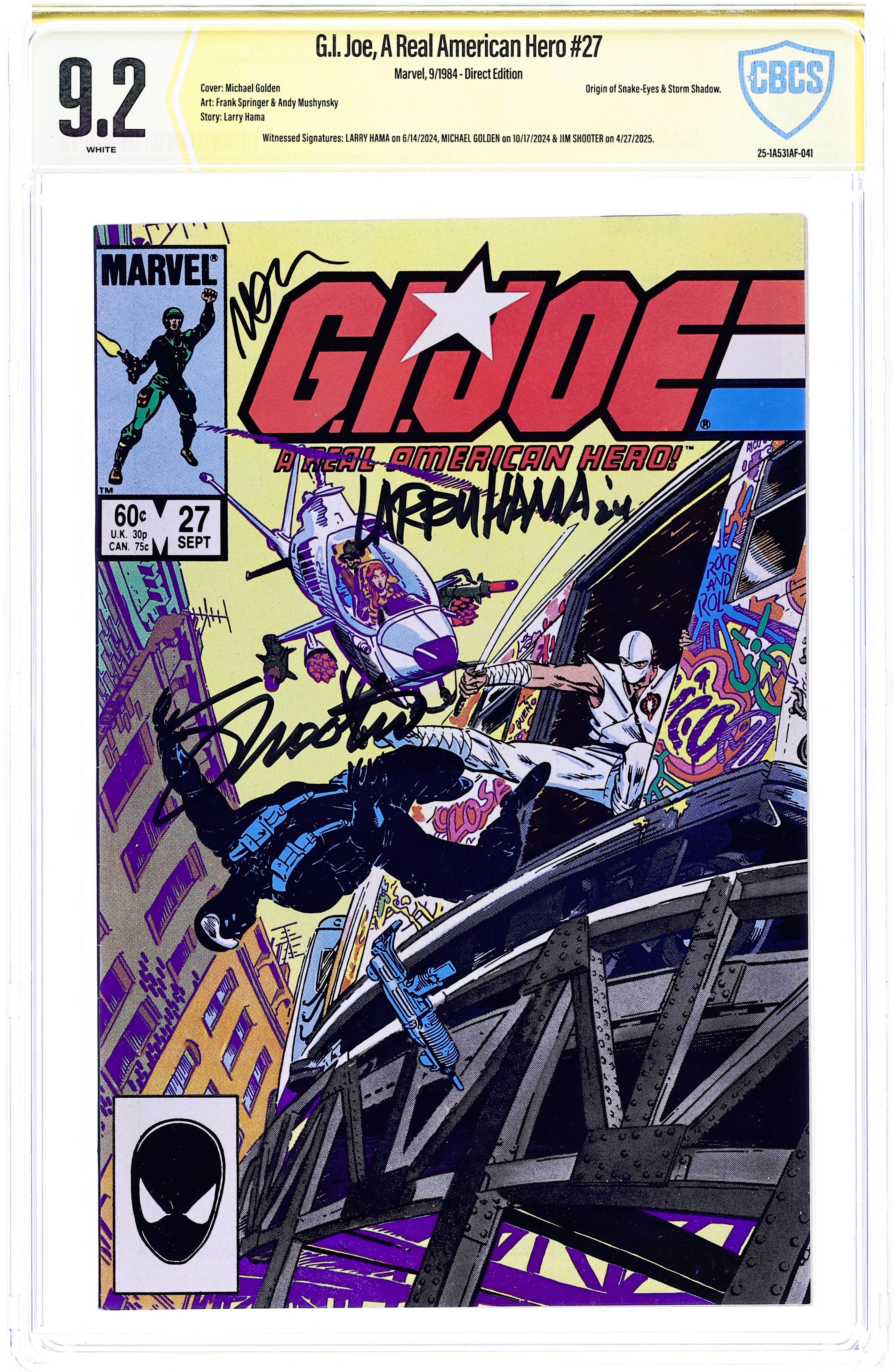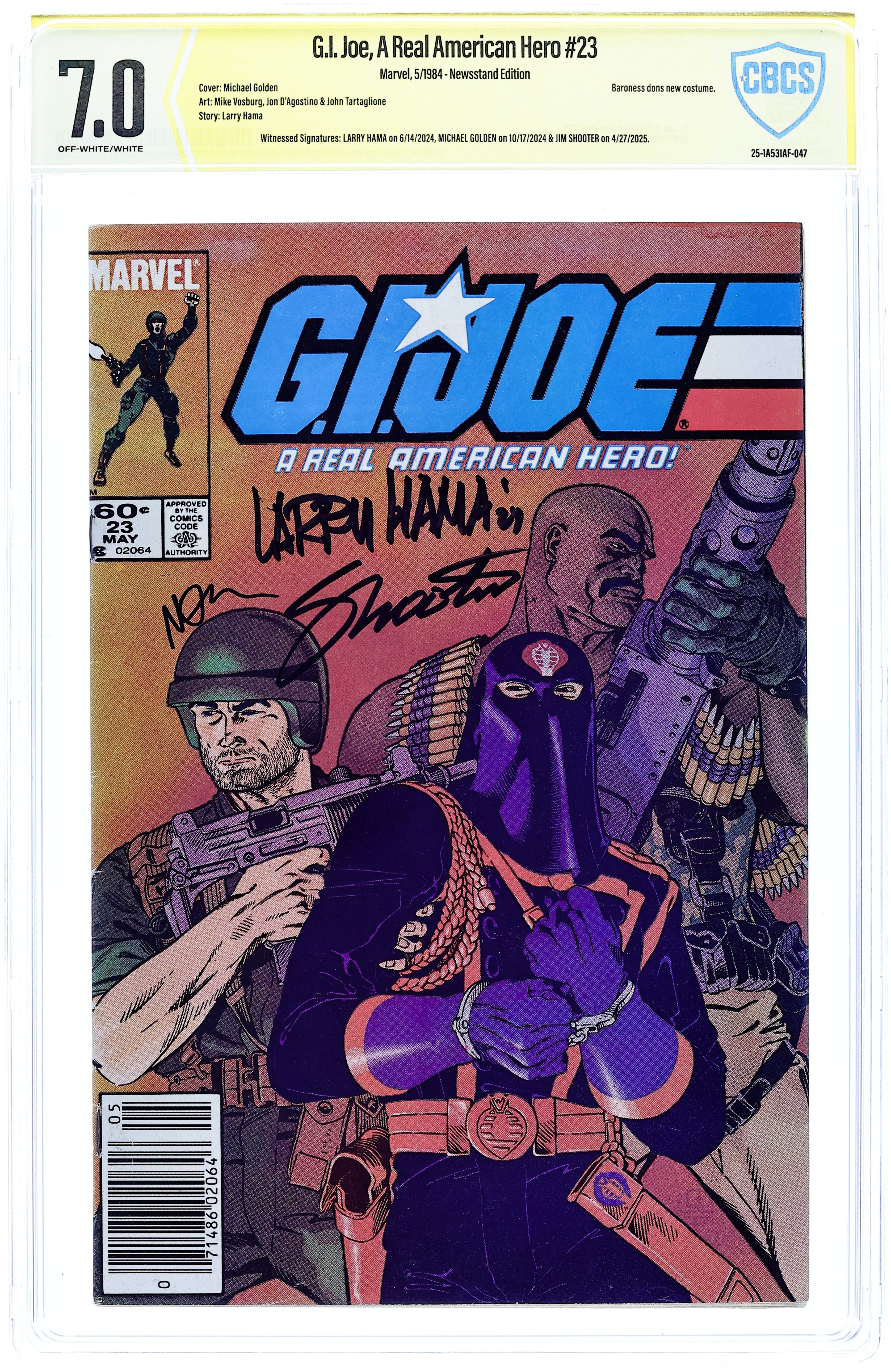 - Newsstand Edition. Witnessed Signature: Larry Hama on 6/14/2024 & Jim Shooter on 4/27/2025.