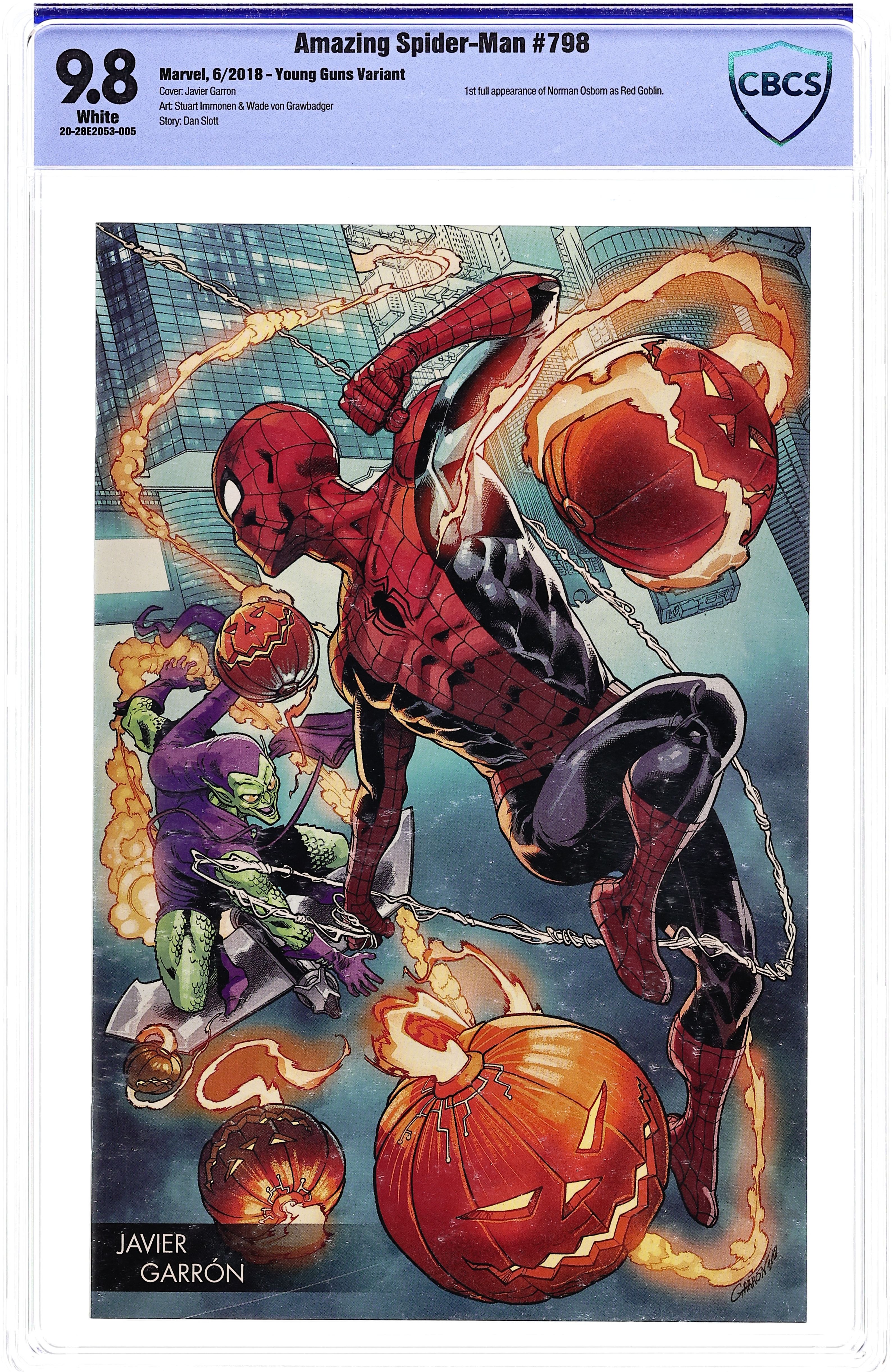 JScottCampbell.com Edition C. The Curse of the Green Goblin: Part 1 of 2 - Written by Ryan Stegman. Art by Brian Level. Cover by J. Scott Campbell. The Green Goblin returns! Normie Osborn has been plotting behind the scenes for the past year… now his plans are finally ready. Will the Spider-Family be prepared for what he has in store for them? 28 pages, full color. Rated T Cover price $3.99.
