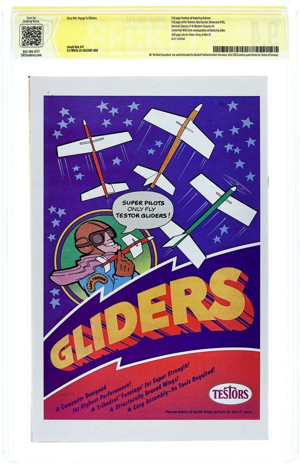 Vengeance for a Fallen Gladiator! - Written by Michael Fleisher. Art and Cover by José Luis García-López. The weirdest western hero now in his own magazine! Plus: Aquaman in 1-page Hostess Twinkies ad "That Dirty Beach" with pencils by Curt Swan; 1-page "And Now...We Interrupt This Comic to Bring You a Word from Your New Publisher..." by Jenette Kahn with art by Neal Adams; and Superman in 1-page public service announcement "Justice for All Includes Children #9" with pencils by Curt Swan. 32 pages, full color. Cover price $0.30.