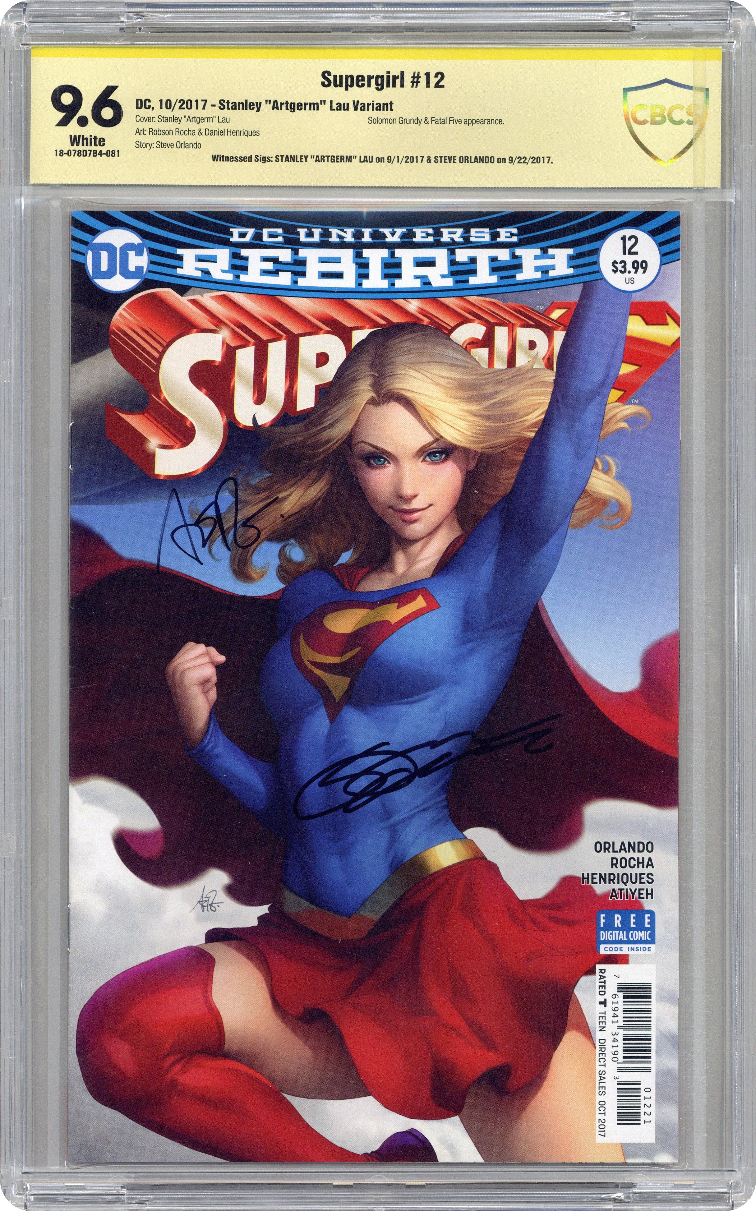 - Witnessed Sigs: Steve Orlando on 9/22/2017 and Stanley "Artgerm" Lau on 10/7/2017. Stanley "Artgerm" Variant.