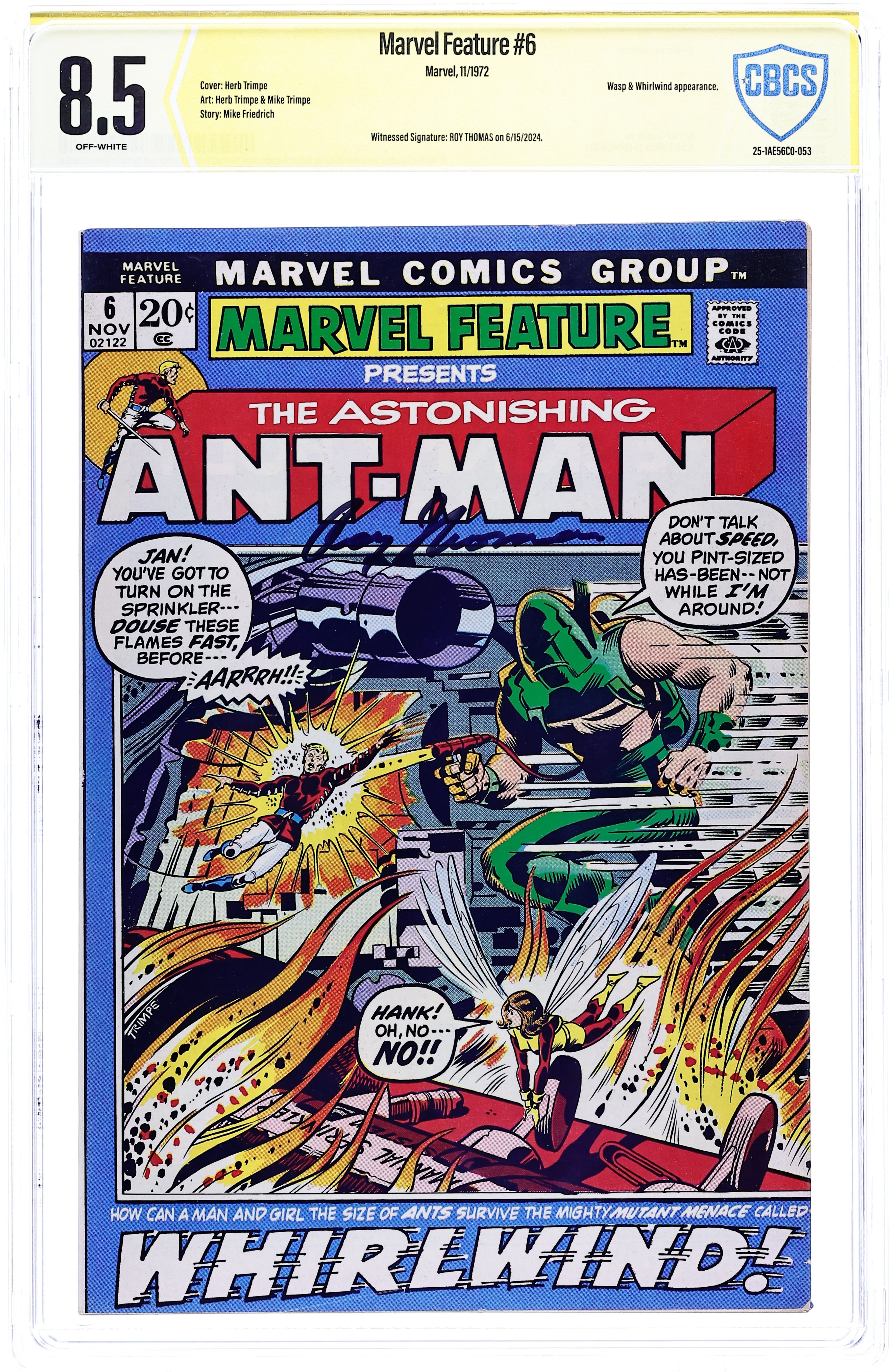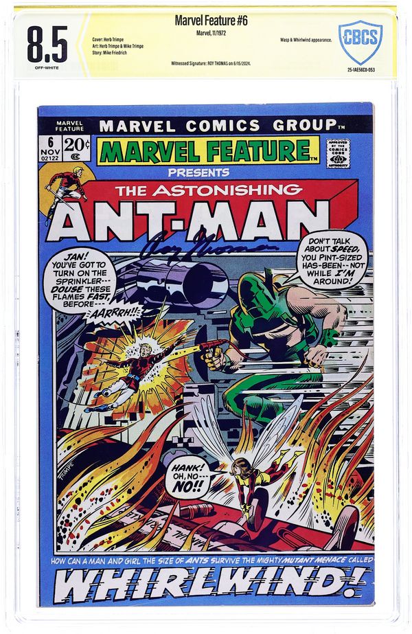 "Hellstorm!" Guest-starring Ant-Man and the Wasp. Script by Mike Friedrich. Pencils by Herb Trimpe. Inks by Mike Trimpe. Cover by Herb Trimpe. Hank Pym finally makes it back home! And just in time to discover his wife passed out on the floor! What happened to Janet? Unfortunately, there's not much time for answers once the Whirlwind attacks! Ant-Man and the Wasp successfully repel the mutant speedster twice, but during the second encounter their house catches on fire! With both tiny avengers still stuck at miniature size, the battle to escape their burning home becomes more dangerous than fighting the Whirlwind! Will Hank and Janet reach safety before everything goes up in flames? (Notes: The Whirlwind previously appeared in Avengers 83. The letters page includes a letter from comics writer Mike Barr.) 32 pages Cover price $0.20.