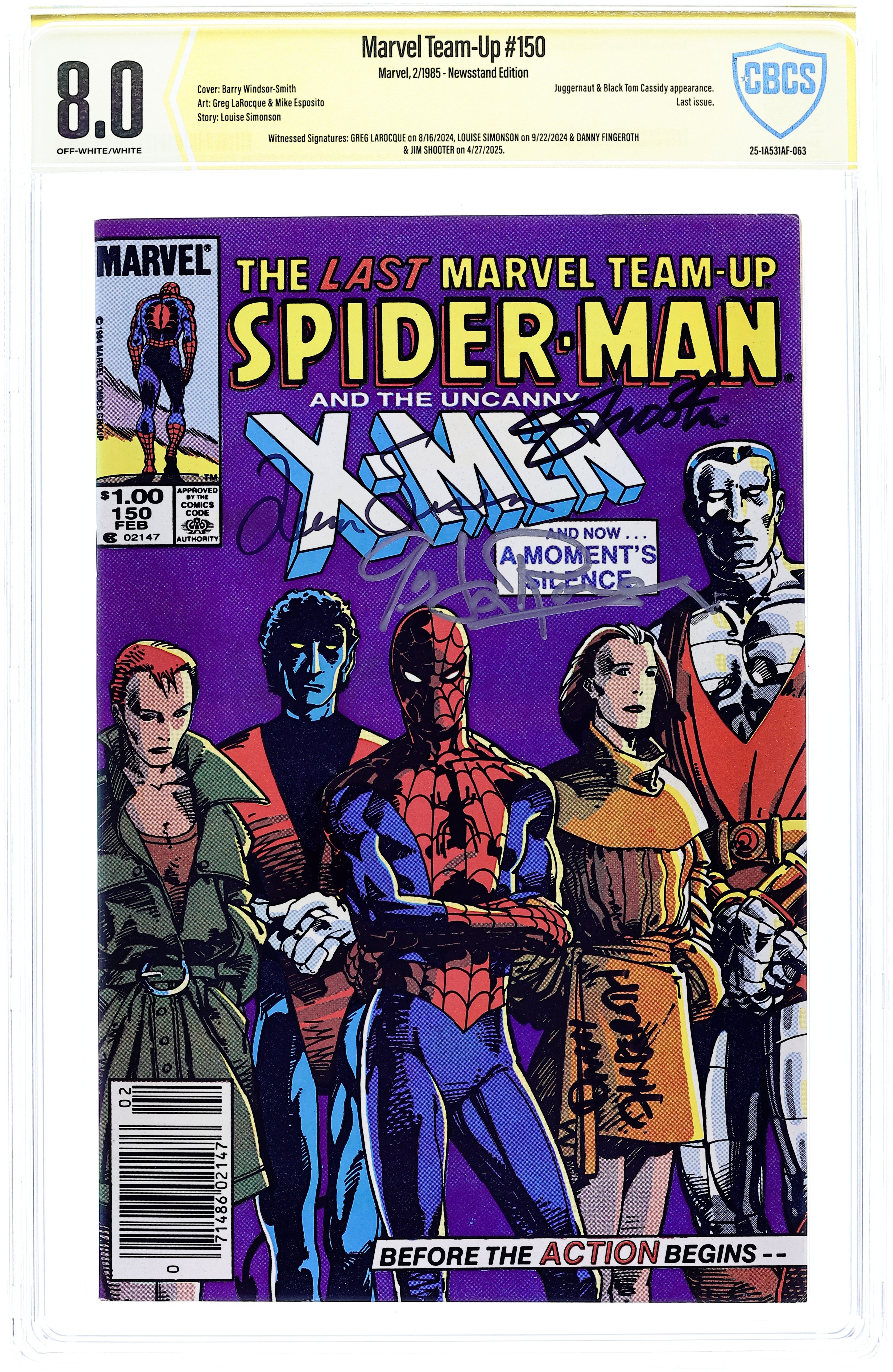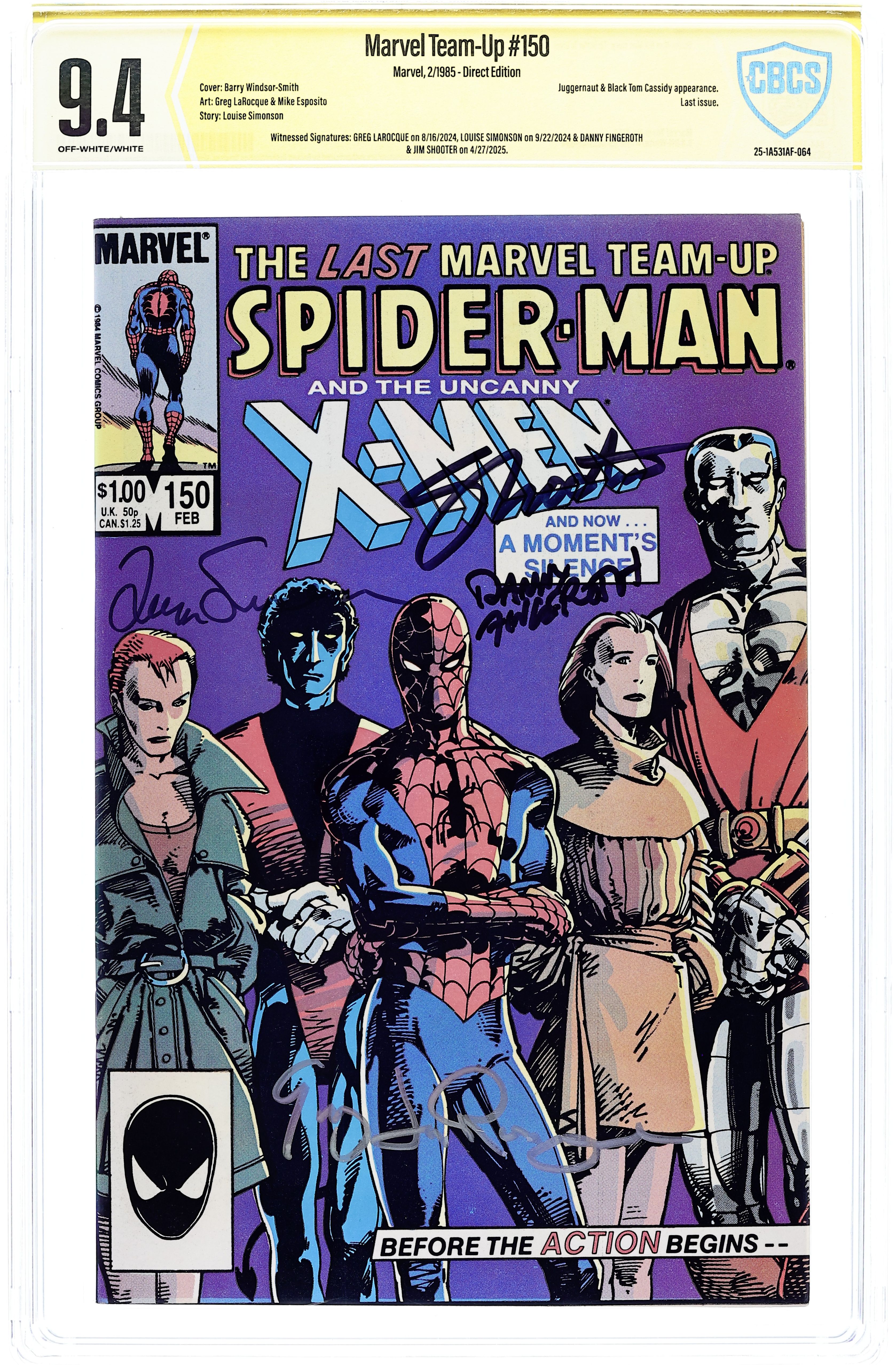 - Direct Edition. Witnessed Signatures: Greg Larocque on 8/16/2024, Louise Simonson on 9/22/2024 & Danny Fingeroth & Jim Shooter on 4/27/2025.