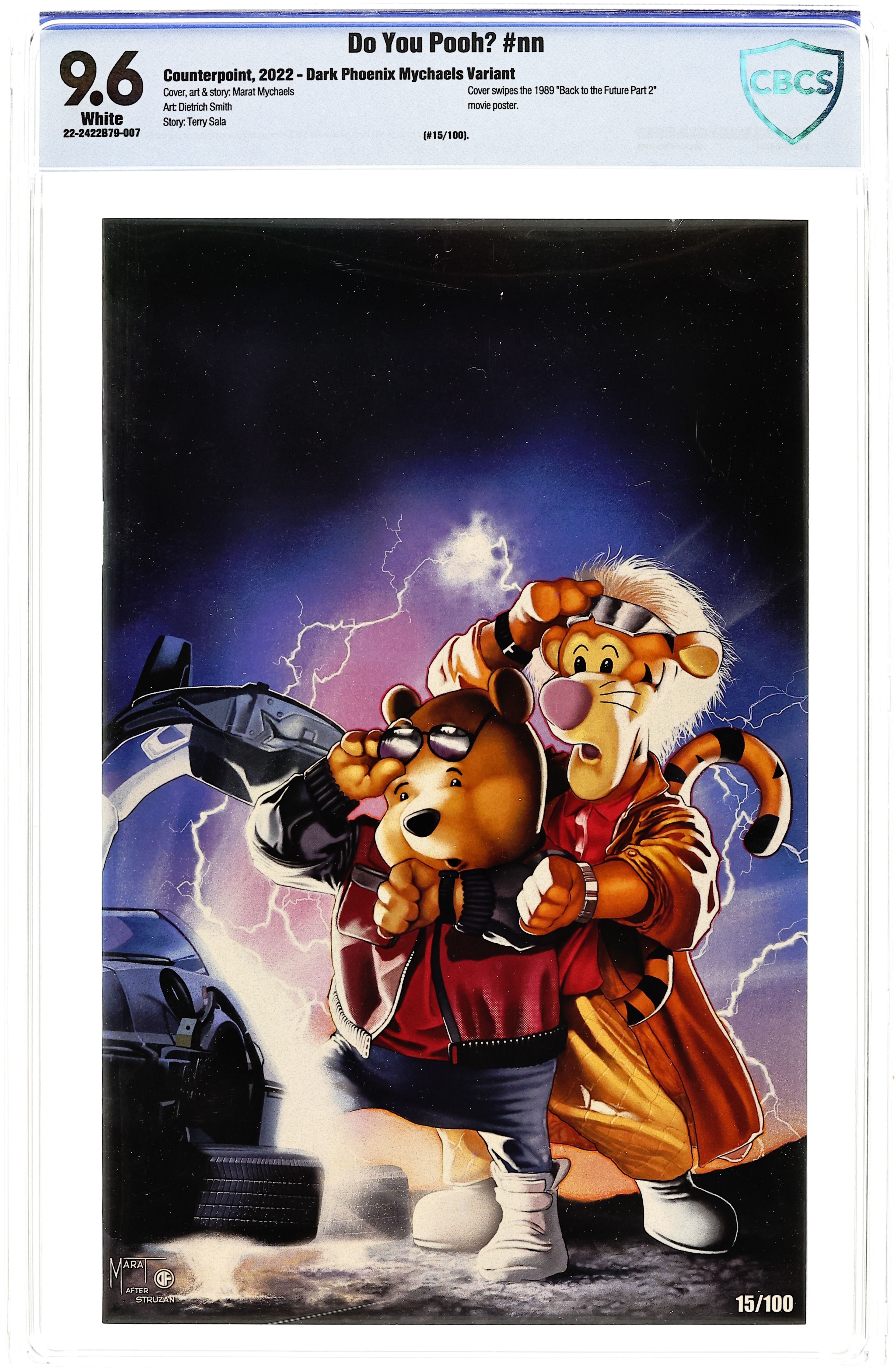 Dark Phoenix Comics Exclusive Virgin cover by Marat Mychaels - limited to 100 copies. "Back to the Future 2" movie poster cover homage. Written by Terry Sala and Marat Mychaels. Art by Marat Mychaels and Dietrich Smith. Deadpool parody comic starring Deadpooh! 24 pages.