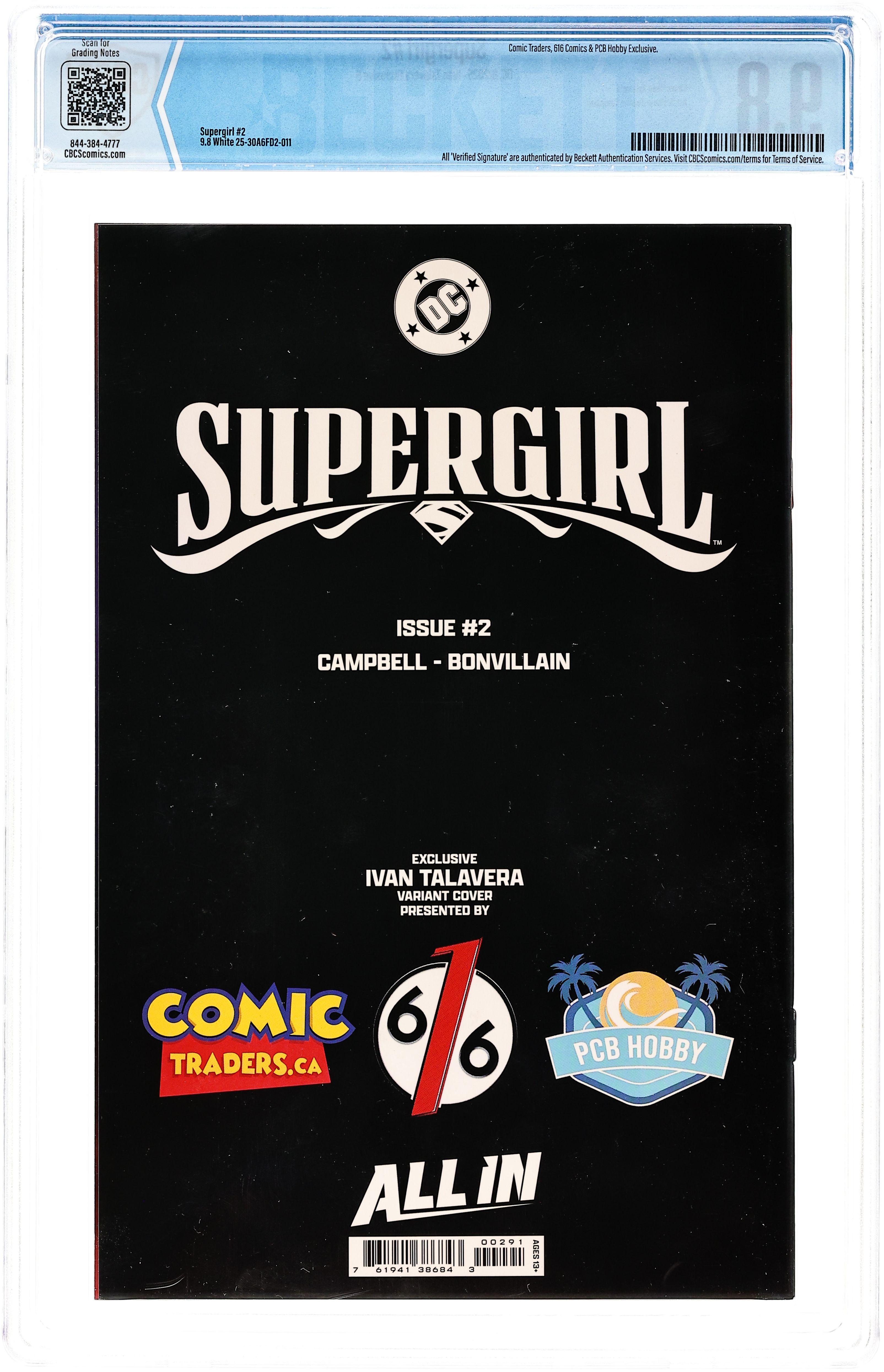 The 616 Comics, Comic Traders, and PCB Hobby Exclusive "Black" Virgin Cover by Ivan Talavera. Written by Sophie Campbell. Art by Sophie Campbell. THE SECRET ORIGIN OF LESLA LAR REVEALED! Discover Lesla's transformation from an awkward nerd in Kandor to a bombshell superbabe. Who knew Supergirl's quest for good could inspire such evil?! Back in Midvale, our hero faces a gigantic problem with kryptonite-like powers. Titano the super-ape is here to take over the idyllic town! To defeat him, Supergirl will have to rely on an unexpected new ally from Metropolis...Lena Luthor! The houses of El and Luthor join for good in this action-packed second issue! 32 pages, full color. Rated T+