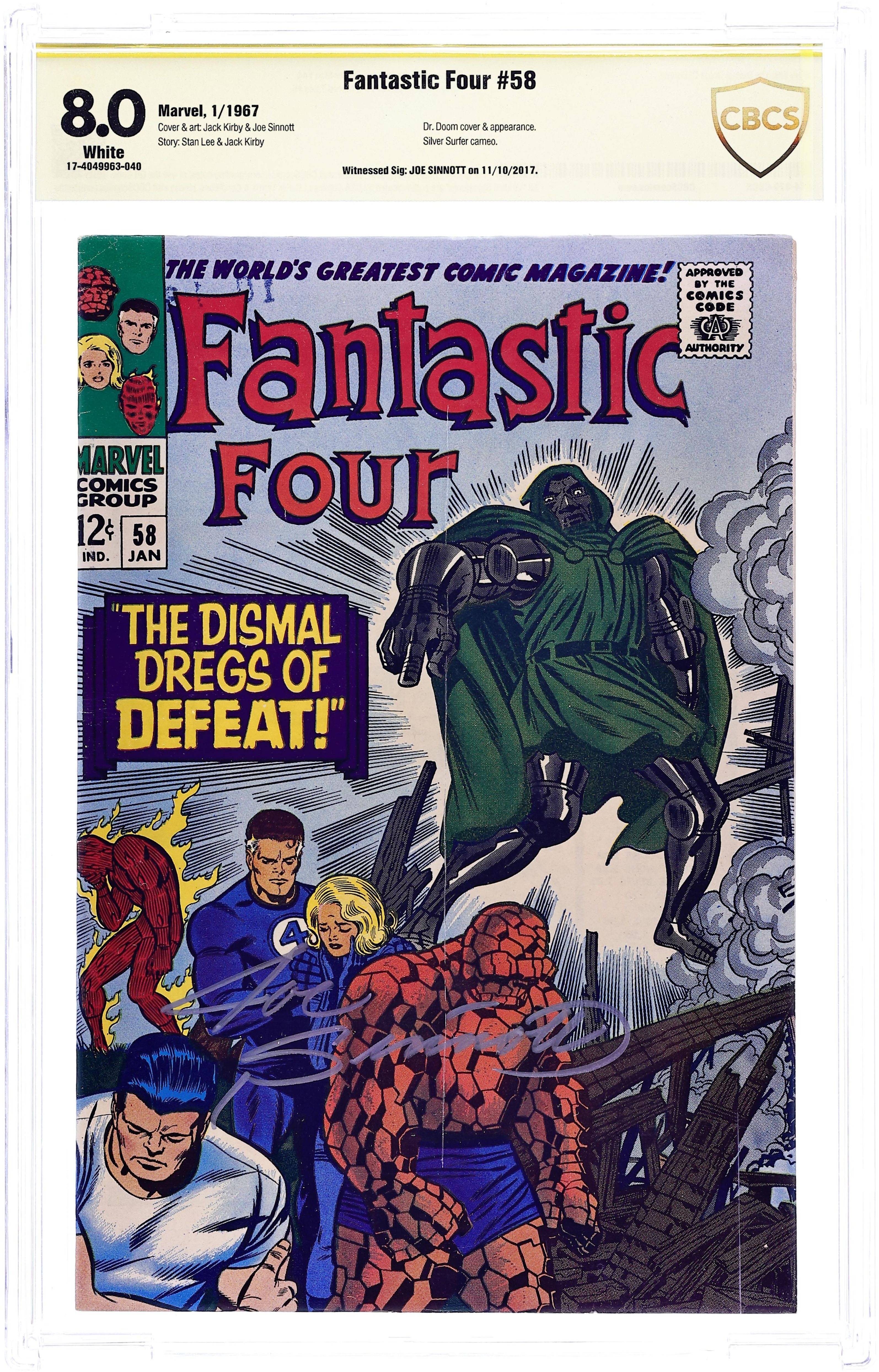 Cover pencils by Jack Kirby, inks by Joe Sinnott. The Dismal Dregs of Defeat!, script by Stan Lee and Jack Kirby (co-plot), pencils by Jack Kirby, inks by Joe Sinnott; Dr. Doom attacks and defeats the FF; he also steals the Silver Surfer's cosmic powers (part 2 of 4). Lockjaw (of the Inhumans) appearance. 36 pgs. $0.12. Cover price $0.12.