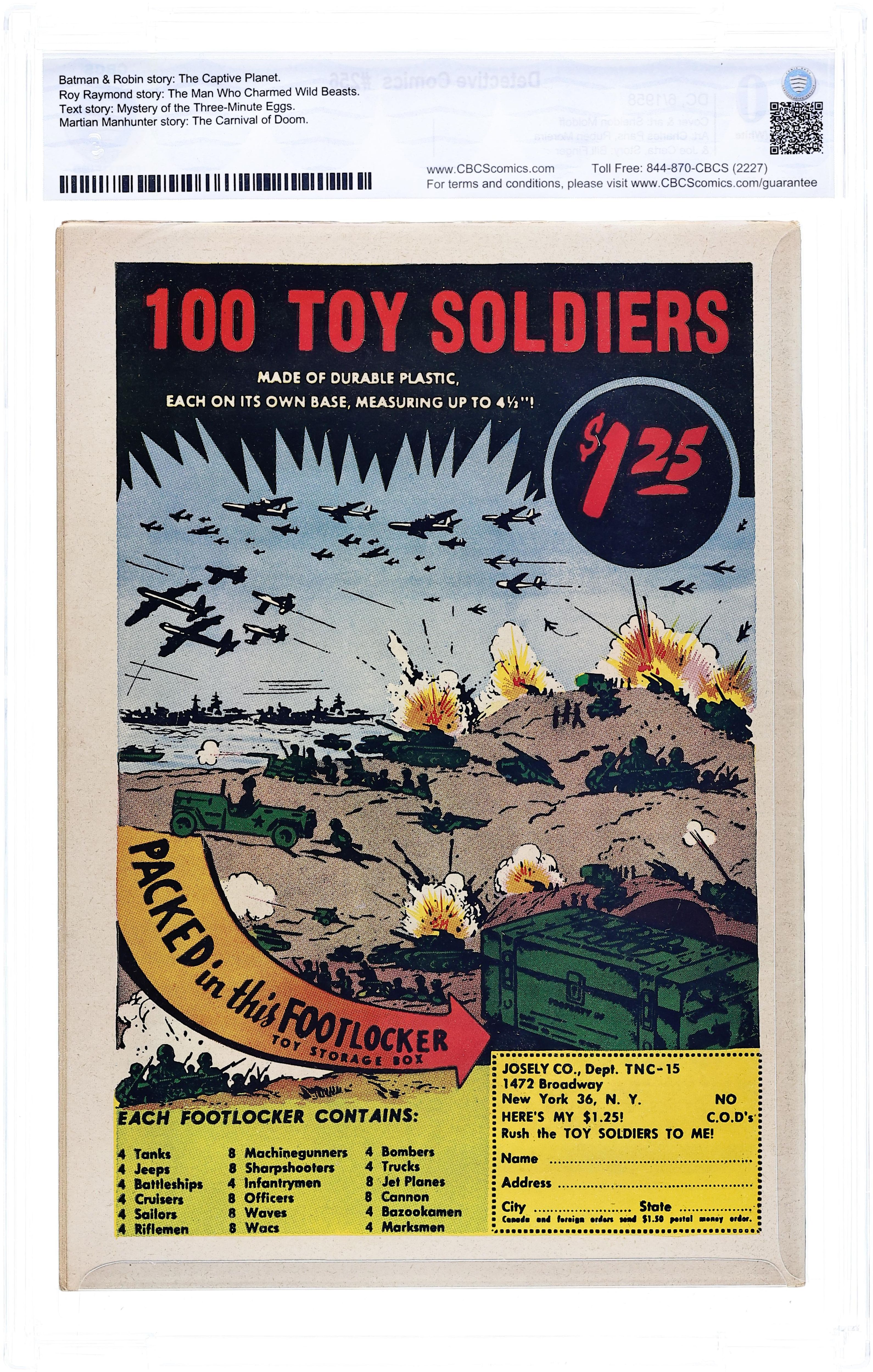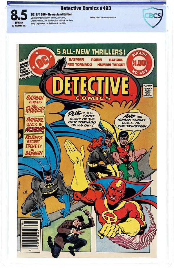 Cover art by Dick Giordano. As Batman #400 looms, this issue takes a look at the Dark Knight's Rogues Gallery! in "Know Your Foes," script by Doug Moench, pencils by Gene Colan, inks by Bob Smith; starring Joker, Penguin, Killer Moth, Black Mask, Two-Face, Mad Hatter, Deadshot, Ras Al Ghul, Nocturna, Poison Ivy, Riddler, Killer Krock, Mr. Freeze and others. "Old Enemies Die Hard," script by Joey Cavalieri pencils by Jerome Moore, inks by Dell Barras; Oliver Queen discovers his apartment burglarized and his answering machine torn up, but he manages to play the tape on another machine and hears Onyxs voice telling him that she is in Tommys music store and that she has been followed by someone; In the music store, Tommy and Onyx share their first kiss, but, minutes later, a powerful villain named Barricade breaks in, battles Onyx, and snatches her headband away; Green Arrow, who has just arrived on the scene, knocks the headband away from him with an arrow. 36 pgs., full color.