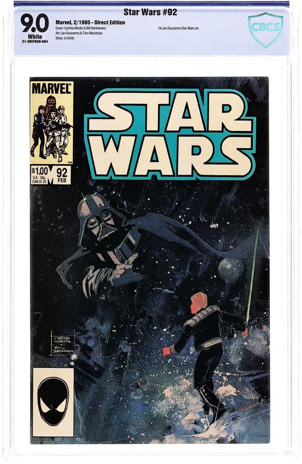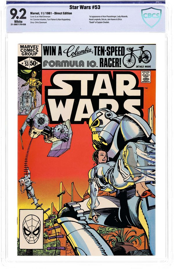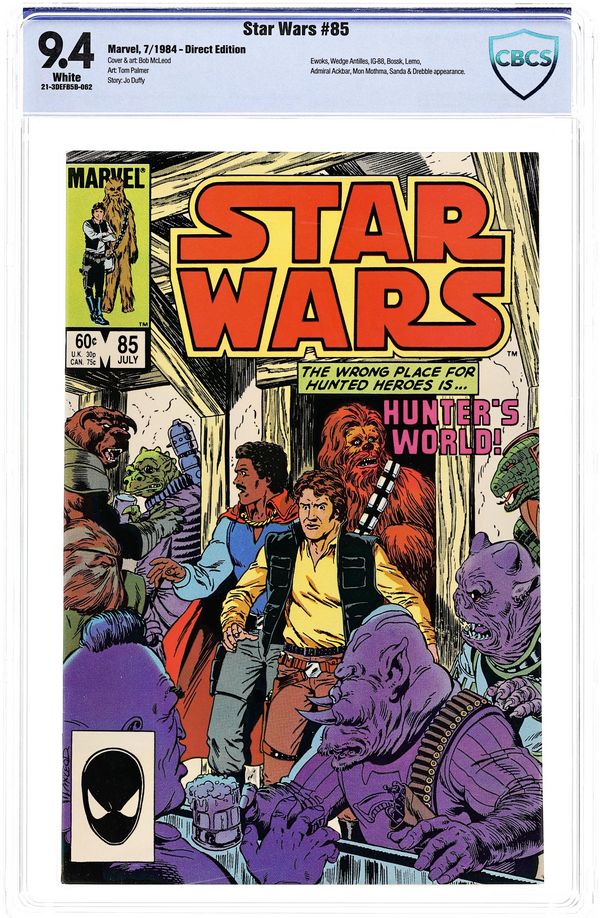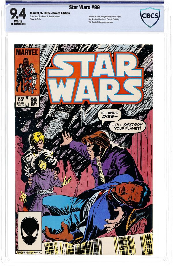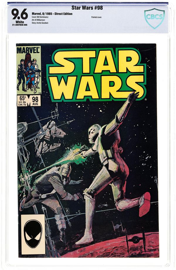 Direct Edition. Painted cover art by Bill Sienkiewicz. "Supply and Demand," script by Archie Goodwin, art by Al Williamson; Han heads out on a mission to a former Imperial prison planet, with Nien Nunb as his co-pilot on the Millennium Falcon; When he gets there, he is surprised to see that his job is to escort a woman and her child; But when the Imperials show up, things get dangerous for Han. 36 pgs., full color. Cover price $0.65.