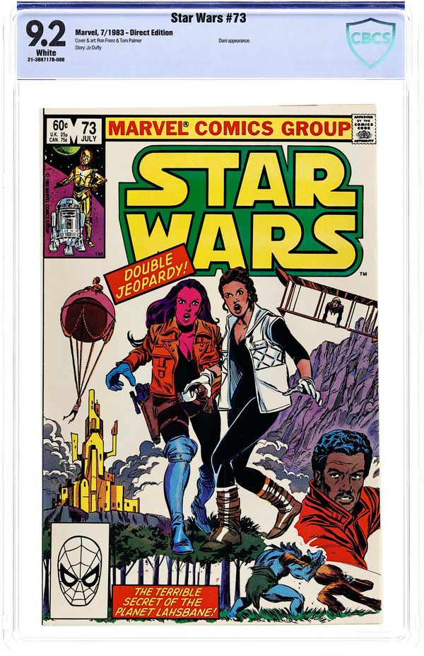 Direct Edition. Talk about pouring gasoline on a fire--Lando is in trouble, and the only way Han and Luke can save him is to start a war! Plus: the long-awaited return of Captain Drebbie Lemo! And discover how Sanda clears up the mystery of the Dancing Goddess in "Touch of a Goddess." Written by Jo Duffy, with art and cover by Ron Frenz and Sam De La Rosa. Cover price $0.65.