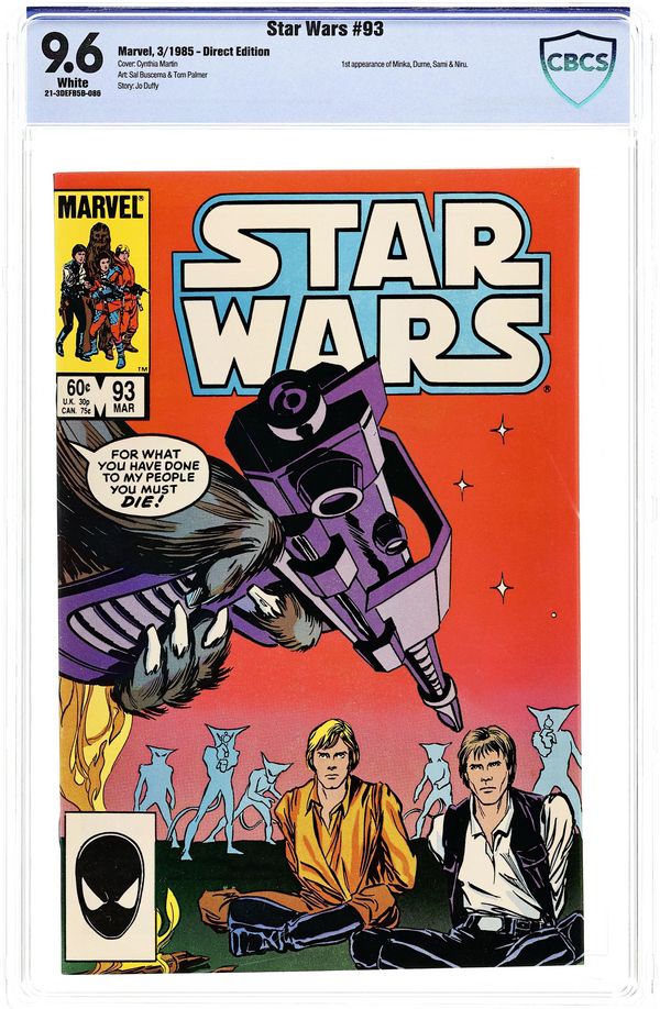Direct Edition. Story by Jo Duffy. Art by Cynthia Martin and Tom Palmer. Cover by Cynthia Martin. "Small Wars" - Han, Luke, Leia, Chewie, Lando, C-3PO and R2-D2 are up to their ears in Ewoks and trouble when war breaks out between the Ewoks and Lahsbees! Cover price $0.65.