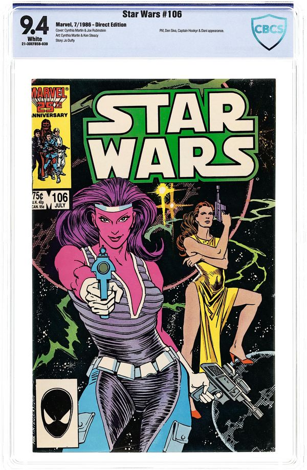 Direct Edition. "Duel with a Dark Lady!" There is a new Dark Lord in the galaxy, and she is out for Luke's head! Not only must Luke fight Lumiya, he must also deal with who and, more dangerously, what she really is! Written by Jo Duffy, with art by Cynthia Martin and Bob Wiacek. Cover by Cynthia Martin. Cover price $0.65.