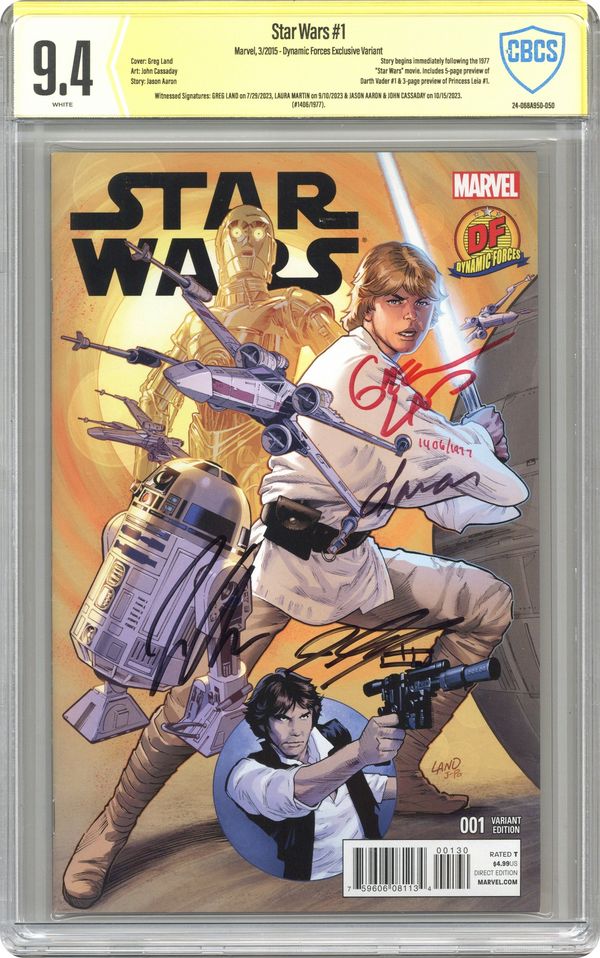 - Witnessed Signatures: Greg Land on 7/29/2023, Laura Martin on 9/10/2023 and Jason Aaron and John Cassaday on 10/15/2023. Dynamic Forces Exclusive Variant. (#1406/1977).