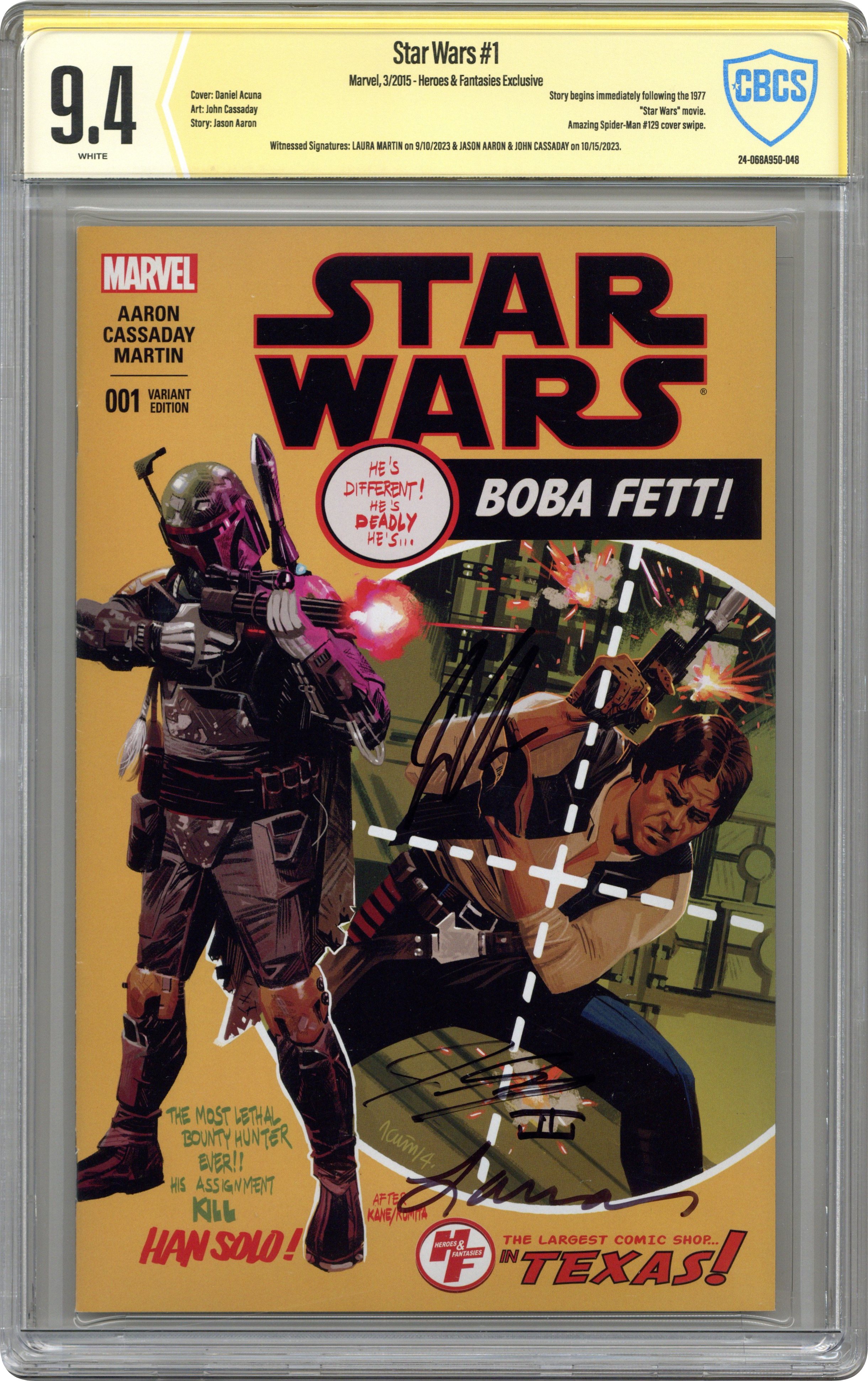 - Heroes & Fantasies Exclusive. Witnessed Signatures: Laura Martin on 9/10/2023 & Jason Aaron & John Cassaday on 10/15/2023.