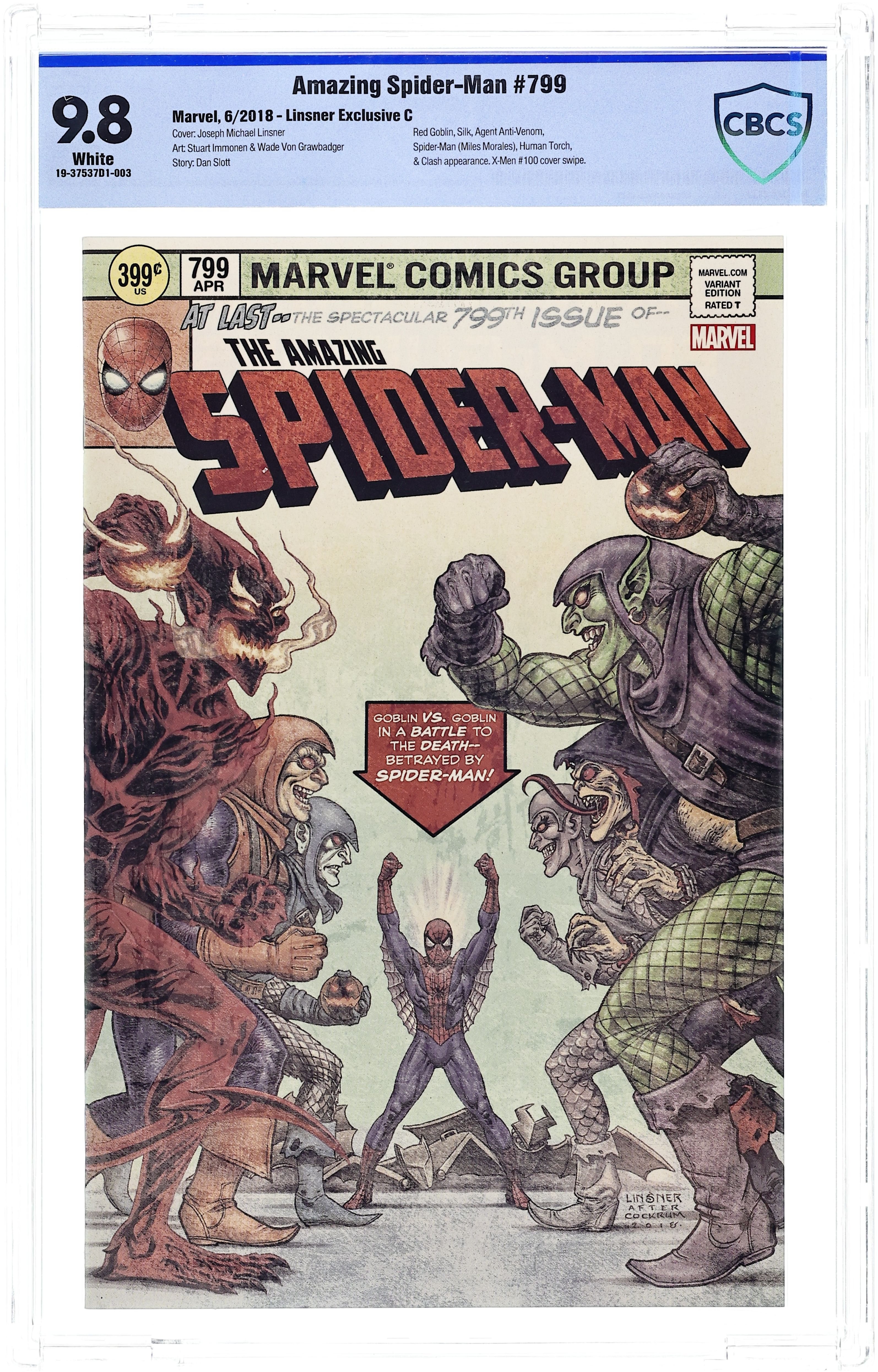Ends Apr 17 7:20 PM CST Bid History 5 bids Current Bid $20 Your Secret Max Bid If you'd like to bid, please log in or register. Limited 1 for 10 Retailer Incentive Variant Cover. Written by Dan Slott. Art by Stuart Immonen. Cover by Ed McGuinness. GO DOWN SWINGING Part 1 The Green Goblin is back - and scarier than ever! Dan Slott has saved his most harrowing Spider-Man story for last as he and Stuart Immonen kick off the AMAZING SPIDER-MAN story ten years in the making. Osborn got his crazy back and has a plan that'll make all his past plans look like child's play. Peter Parker and the people he loves (ALL of them) are in deep trouble. And who or what is the RED GOBLIN?! The only way Spider-Man survives is to GO DOWN SWINGING! 28 pages, full color. Rated T Cover price $3.99.
