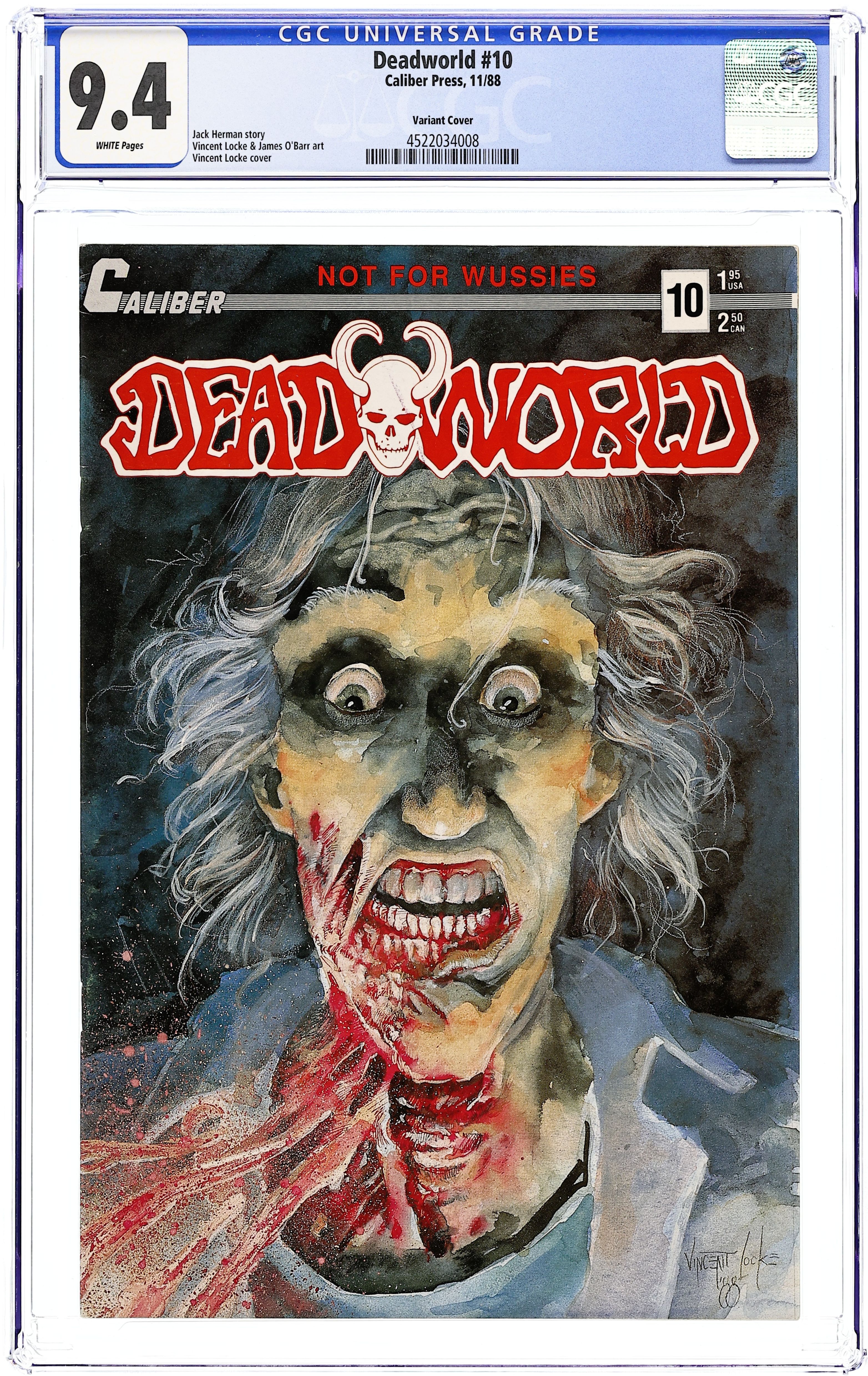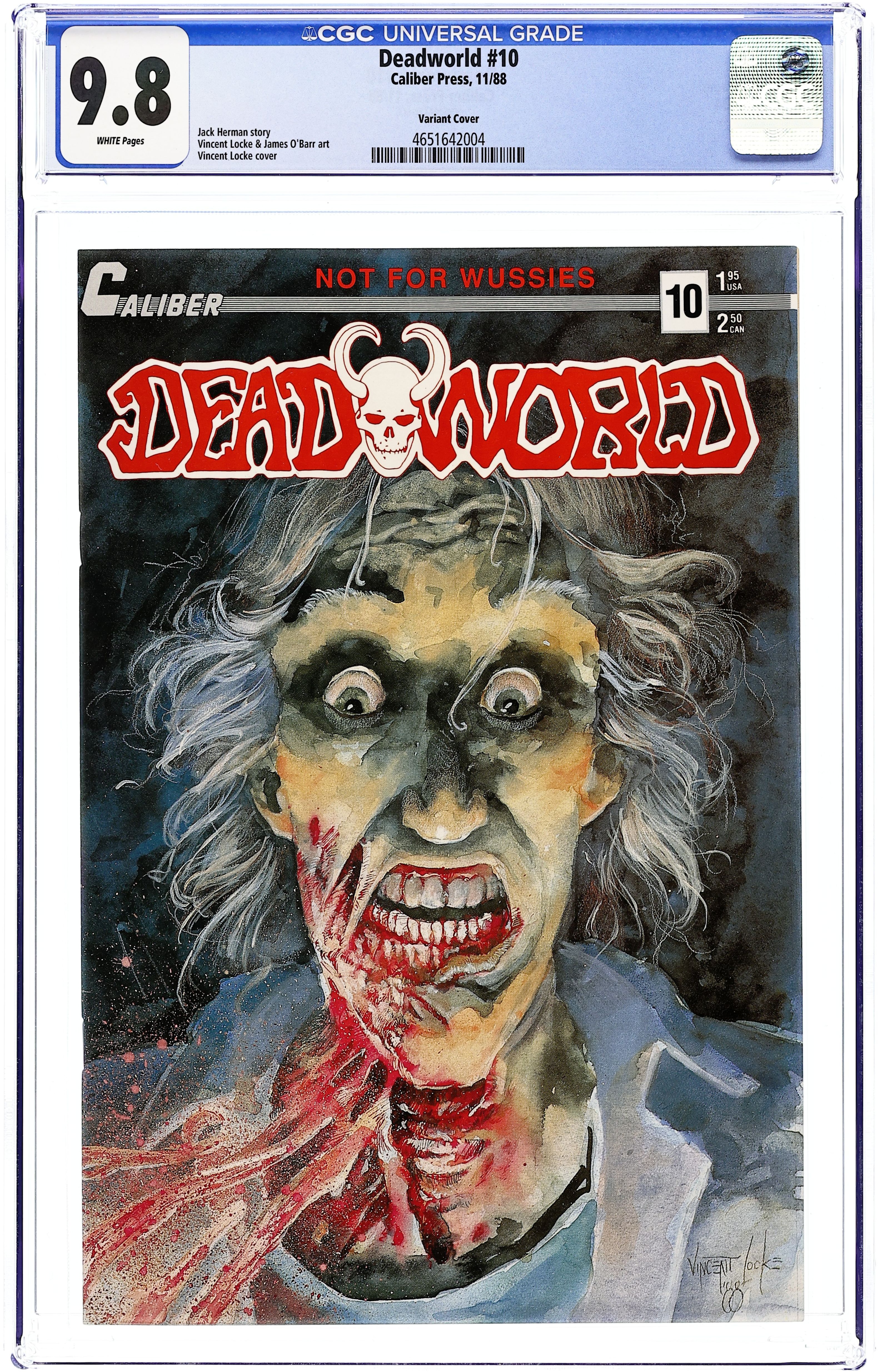 Graphic (violent) variant cover by Vince Locke. Stories by Jack Herman and Vince Locke. Art by Vince Locke. Full page teaser ad on the back cover for the Crow comic book that predates the Crow's first story app in Caliber Presents #1. The original series of this acclaimed zombie comic, which appeared years before The Walking Dead. The Moloch/King Zombie battle ends in tragedy for the heroes; the zombie called Amy begins her strange quest. First issue under Caliber publishing. 32 pages, B&W. Mature readers. Cover price $1.95.
