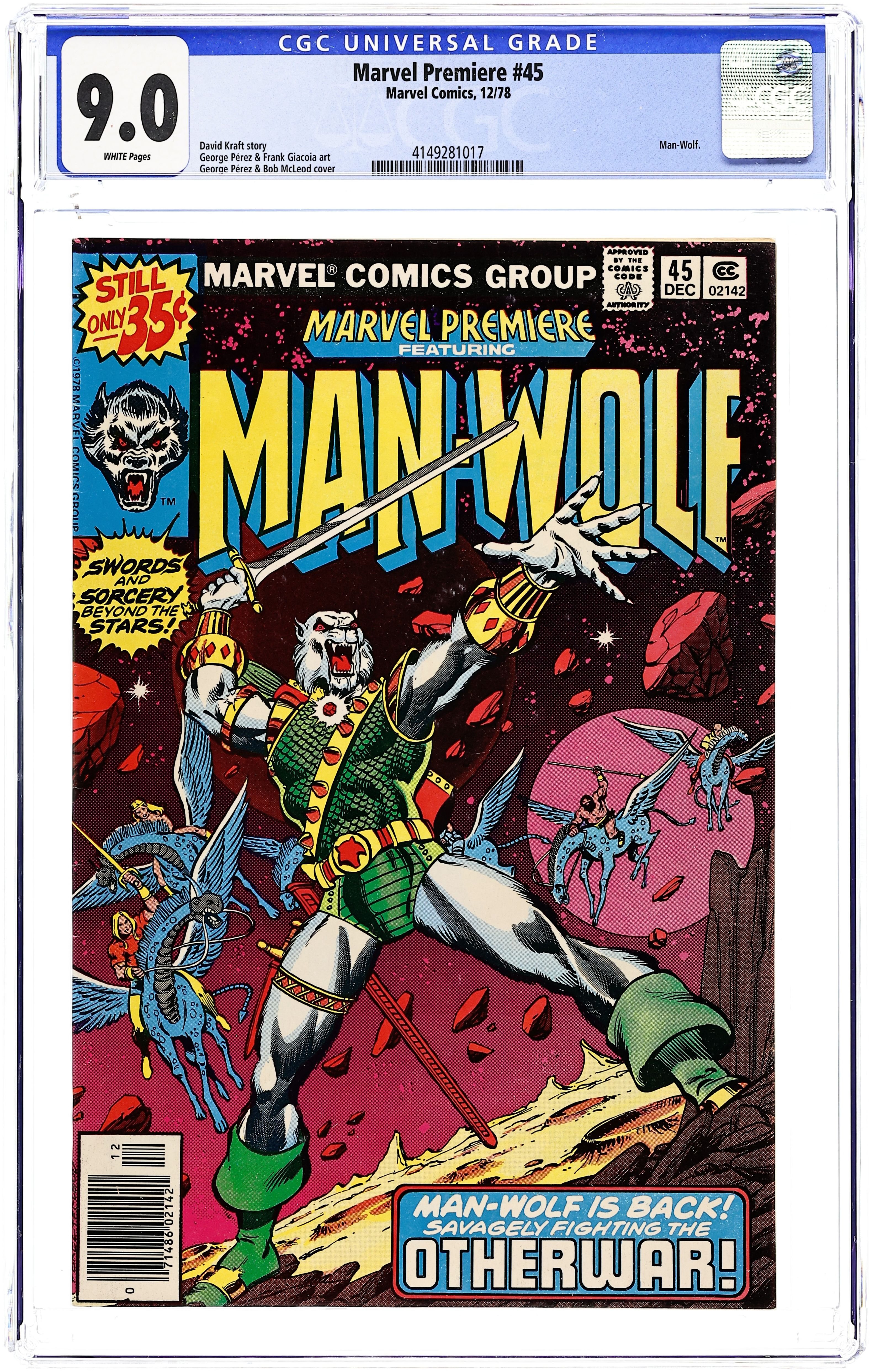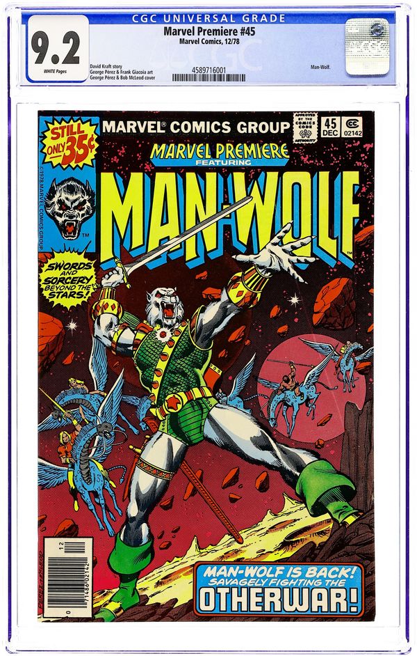 Man-Wolf stars in "Otherwar!" Script by David Kraft, pencils by George Perez, inks by Frank Giacoia. The story continues from Creatures on the Loose 37. Perez/Bob McLeod cover. Cover price $0.35.