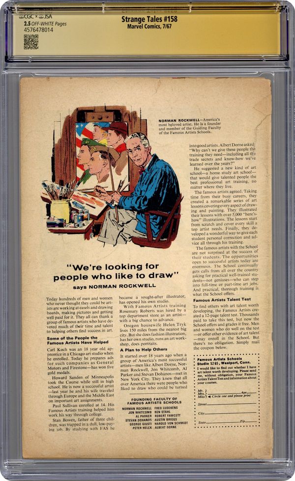 Tags: Marvel Legacy Numbering: Doctor Strange (part 158)Strange Tales (1951 1st Series) 158 CGC 2.5 JSA Steranko