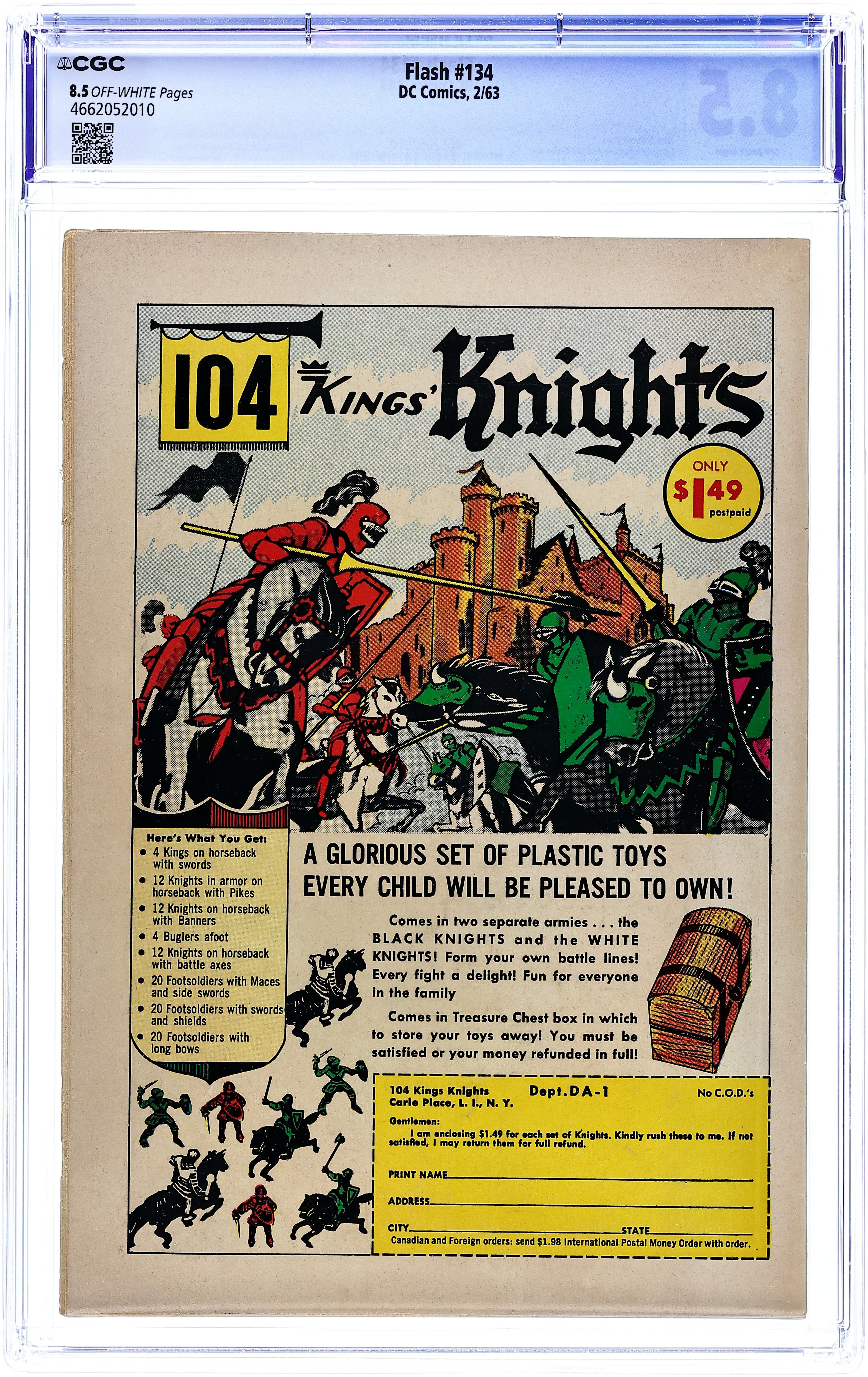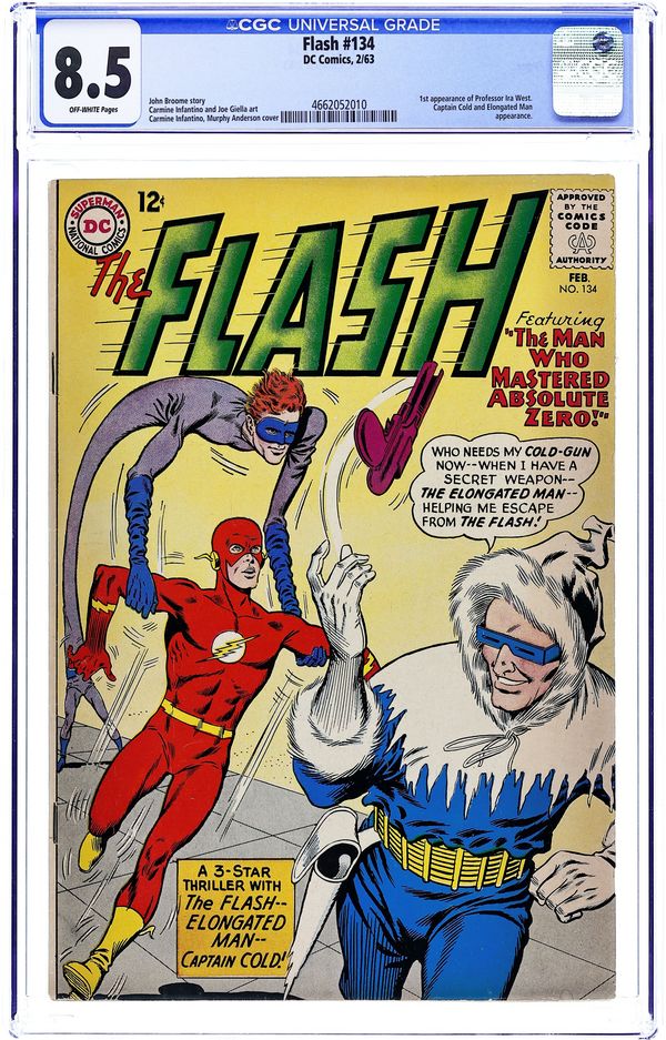 Cover pencils by Carmine Infantino, inks by Murphy Anderson. The Man Who Mastered Absolute Zero!, script by John Broome, pencils by Carmine Infantino, inks by Joe Giella; Exposure to an unknown radiation causes Elongated Man to foil Flash's attempts to capture Captain Cold. The Threat of the Absent-Minded Professor!, script by John Broome, pencils by Carmine Infantino, inks by Joe Giella; Criminals threaten to kill Barry if Professor West doesn't help them fix their nuclear-ray projector. Compacs 4-pack ad. Ads for Giant Superman Annual and Giant Batman Annual. Amazing Speeds! fact page. Letters from super fans Jerry Bails and Thomas McGeehan. Ad for Showcase with Tommy Tomorrow, ad for Our Army at War. Circulation statement: 270,000 copies per month. 36 Pages, Full Color. Cover price $0.12.