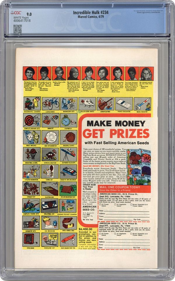 Tags: Marvel Legacy Numbering: Hulk (part 234), HulkIncredible Hulk (1962 Marvel 1st Series) 234 CGC 9.8