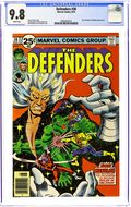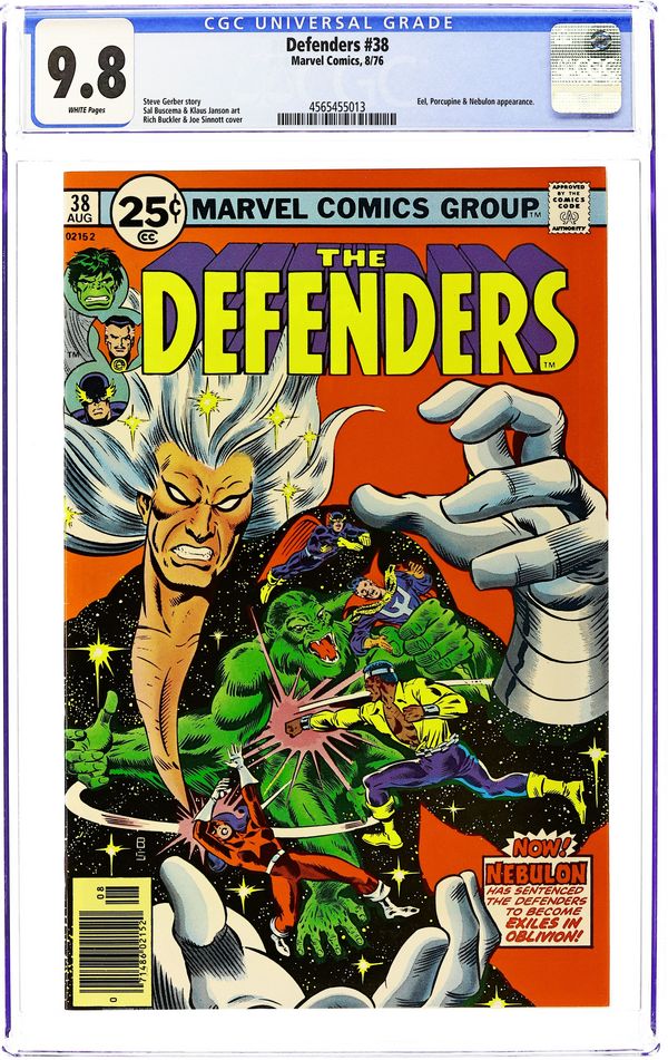 Last 25-cent cover price. Cover pencils by Rich Buckler, inks by Joe Sinnott. Exile to Oblivion! Script by Steve Gerber, pencils by Sal Buscema (layouts) and Klaus Janson (finished art), inks by Klaus Janson; The Defenders escape from the other dimension where Nebulon left them and capture Porcupine and Eel. Valkyrie is still in jail; The Elf with the gun kills Stu. Letters to the editor from historian Peter Sanderson and Ann Nichols. The letters page also contains Marvel Value Stamp Series B # 6 (Conan by Barry Windsor-Smith). One-page Hostess ad, Captain America and the Red Skull. 36 pgs. Cover price $0.25.